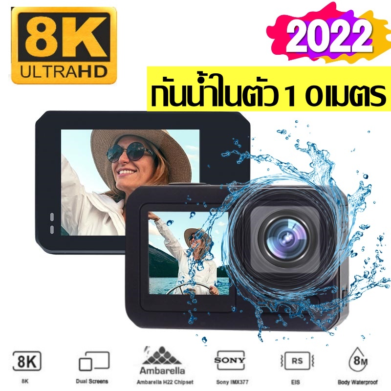 2022 New Developed 8K 6K 4K Action Camera with Touch Screen 8X Slow Motion, Timelaps 64MP Photo