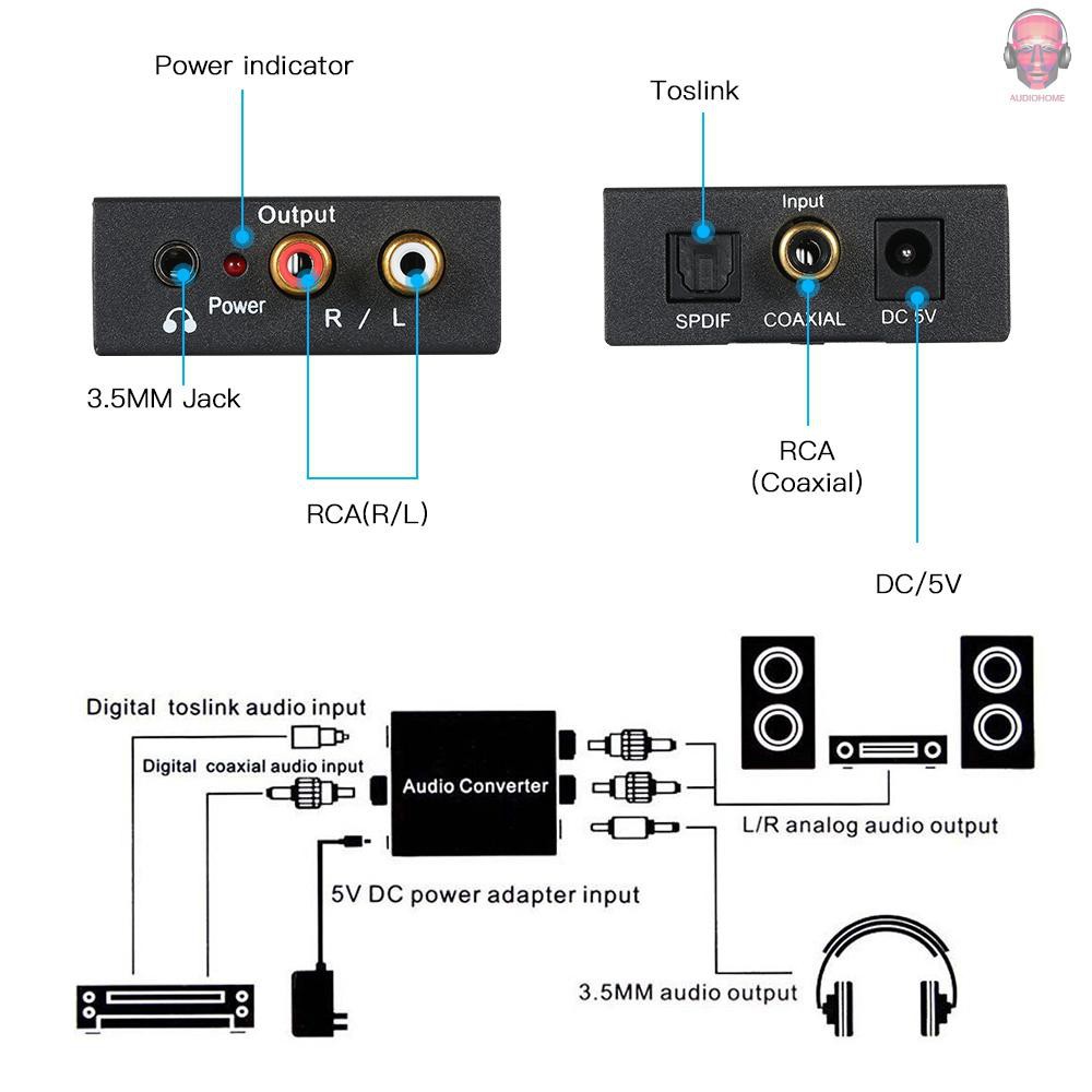 ✿₪┇อะแดปเตอร์แปลงสัญญาณเสียงดิจิตอล To Analog Audio - Toslink And Spdif / Coaxial Inputs Rca L R Aux 3 . 5