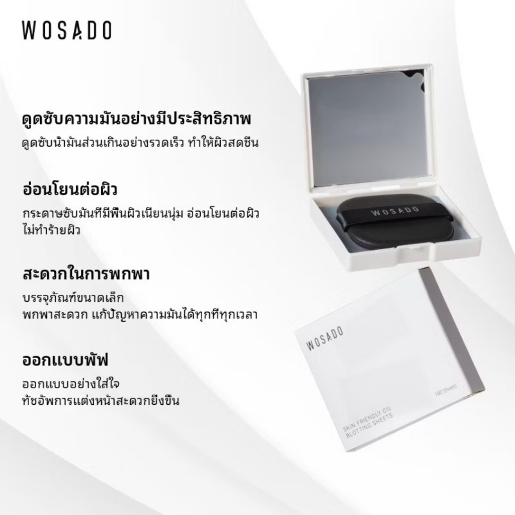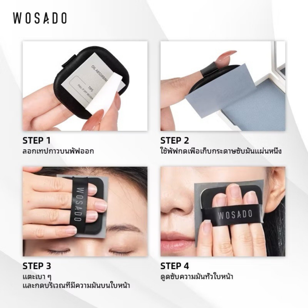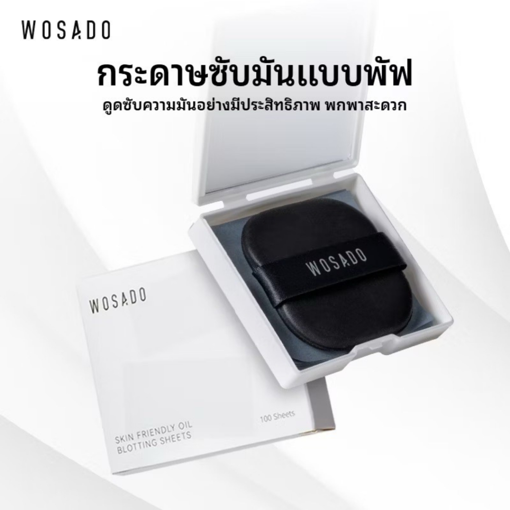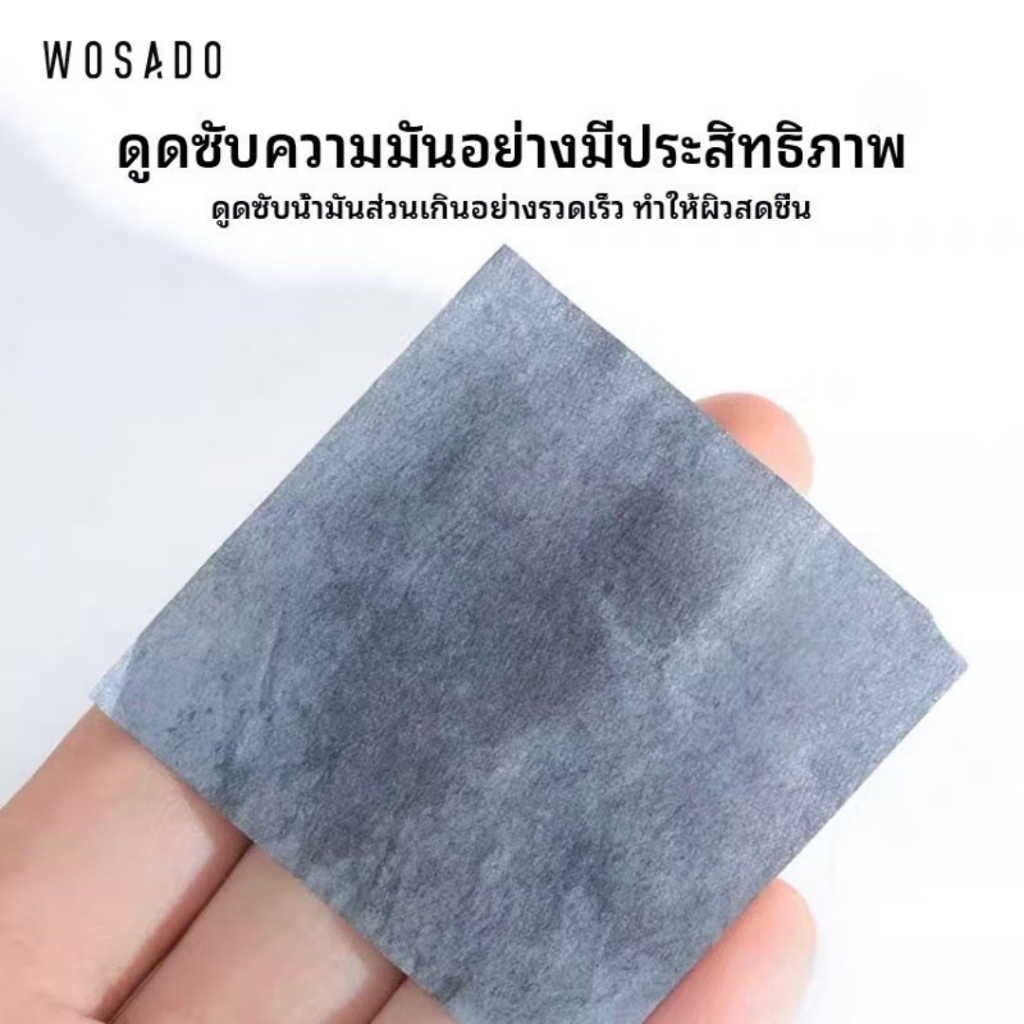 WOSADO กระดาษซับมัน ถ่านไม้ไผ่ พร้อมพัฟกระจกแต่งหน้า (100 แผ่น)