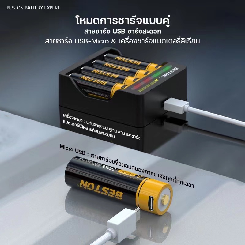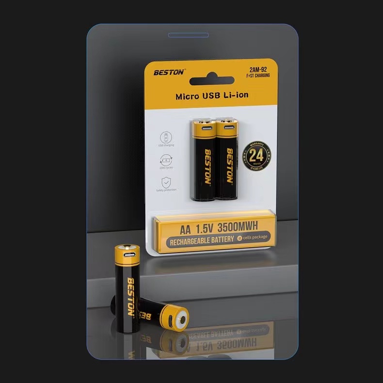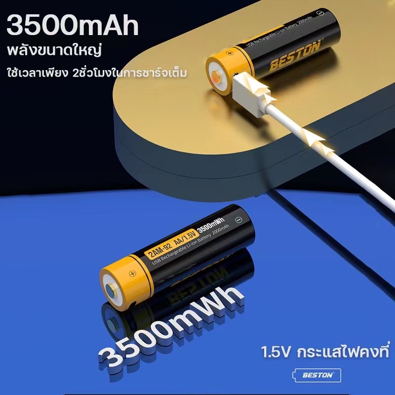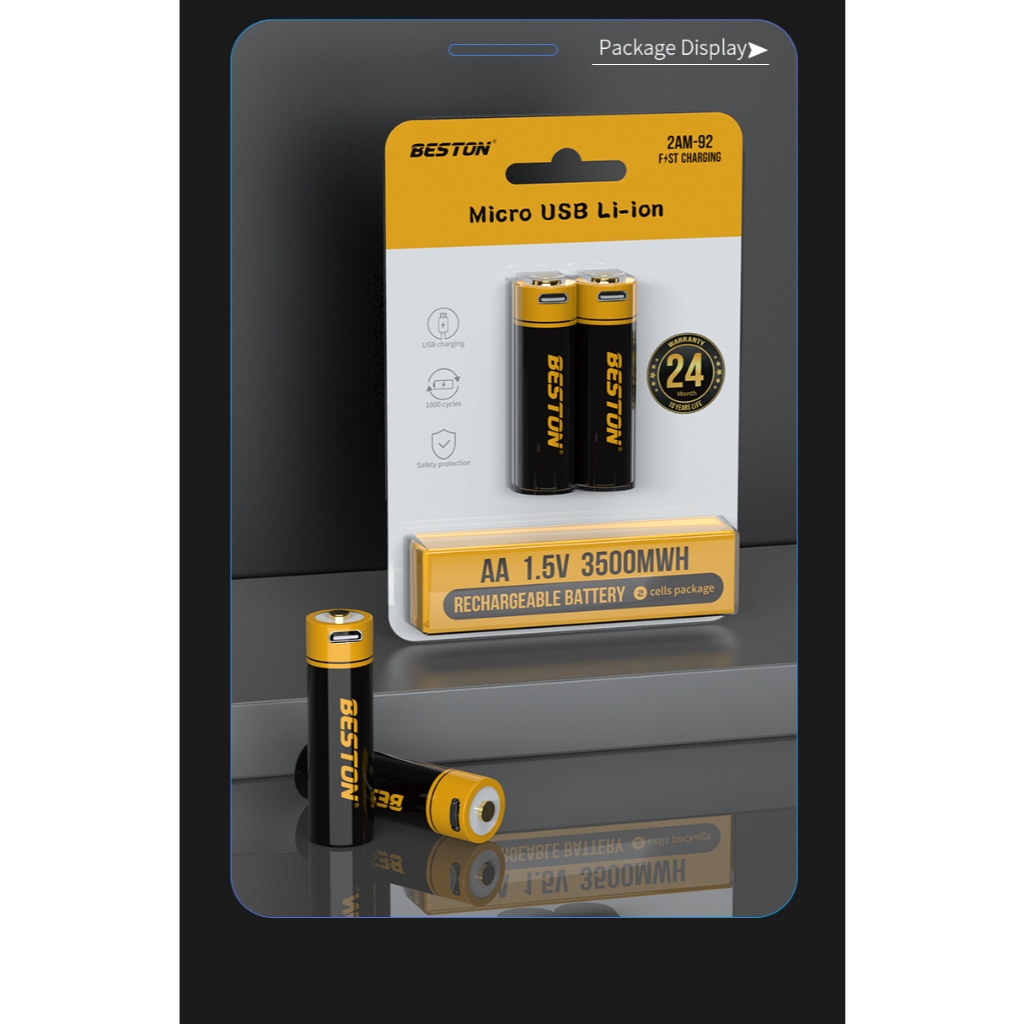 ถ่านชาร์จ Beston AA 1.5V 3500mWh Micro USB Li-ion Battery 2 ก้อน
