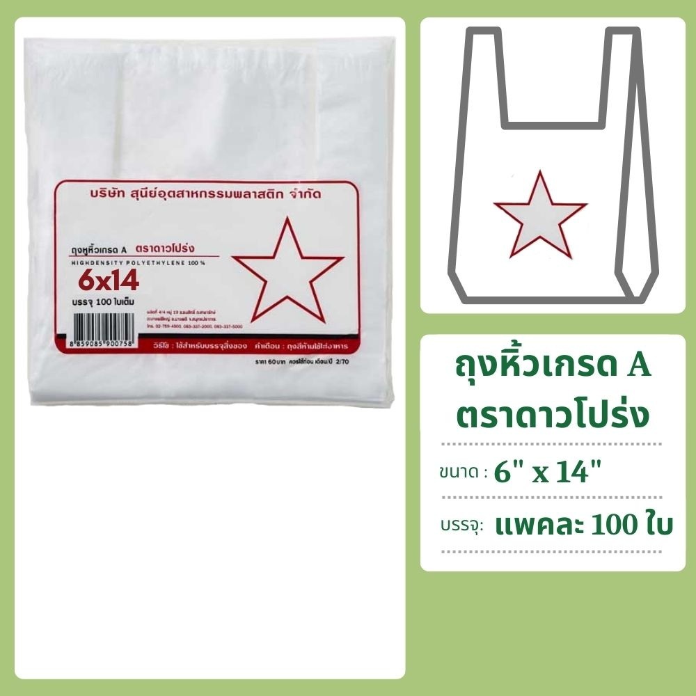 ถุงหิ้วพลาสติก เกรดA ตราดาว แพคละ 100 ใบ