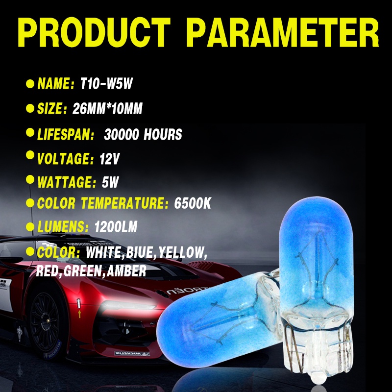 หลอดไฟฮาโลเจนรถยนต์ W1.2W 286 T5 T10 501 194 955 T15 580 7443 T20 582 7440 สีฟ้าสีขาวสีเหลืองสีแดงสีเขียวสีเหลืองอำพันไฟท้ายรถหลอดไฟอัตโนมัติไฟแสดงสถานะ