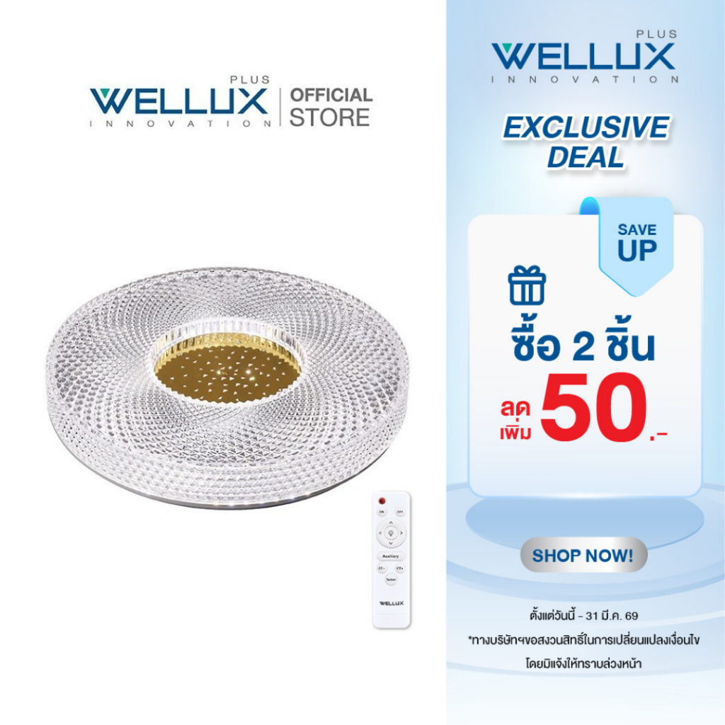 WELLUX โคมไฟเพดานติดลอย 3 แสง 32W 42W มีรีโมท LED Multi-Smart Ceiling Lamp รุ่น LOTUS SERIES