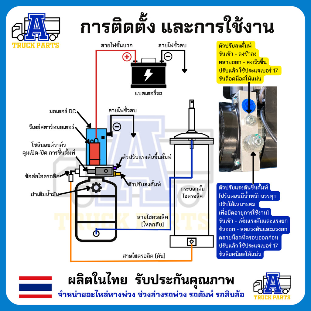ปั้มไฟฟ้าบังคับดั้มพ์ ยกดัมพ์ พร้อมสวิทย์ ใช้กันไฟ 12V และ 24V รีโมทมีสาย รีโมทไร้สาย ดั้มพ์ใส่รถปิคอัพ รถอีซูซุ นิสส...