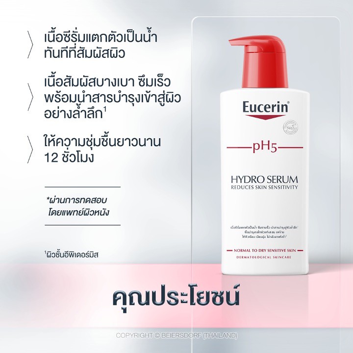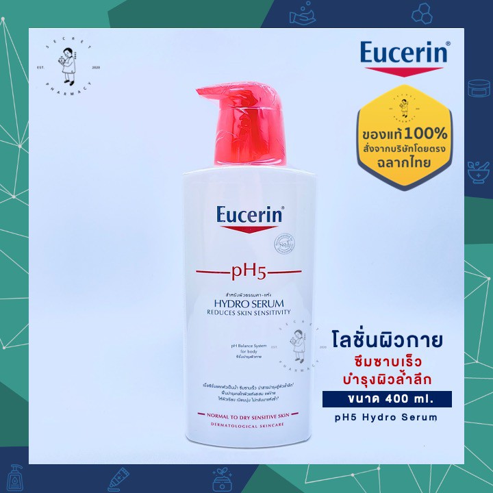 Eucerin pH5 Hydro Serum 400 ml. ยูเซอริน พีเอช 5 ไฮโดร เซรั่ม โลชั่นบำรุงผิวสูตรเข้มข้น ซึมเร็ว ผิวเนียนนุ่ม บำรุงผิว