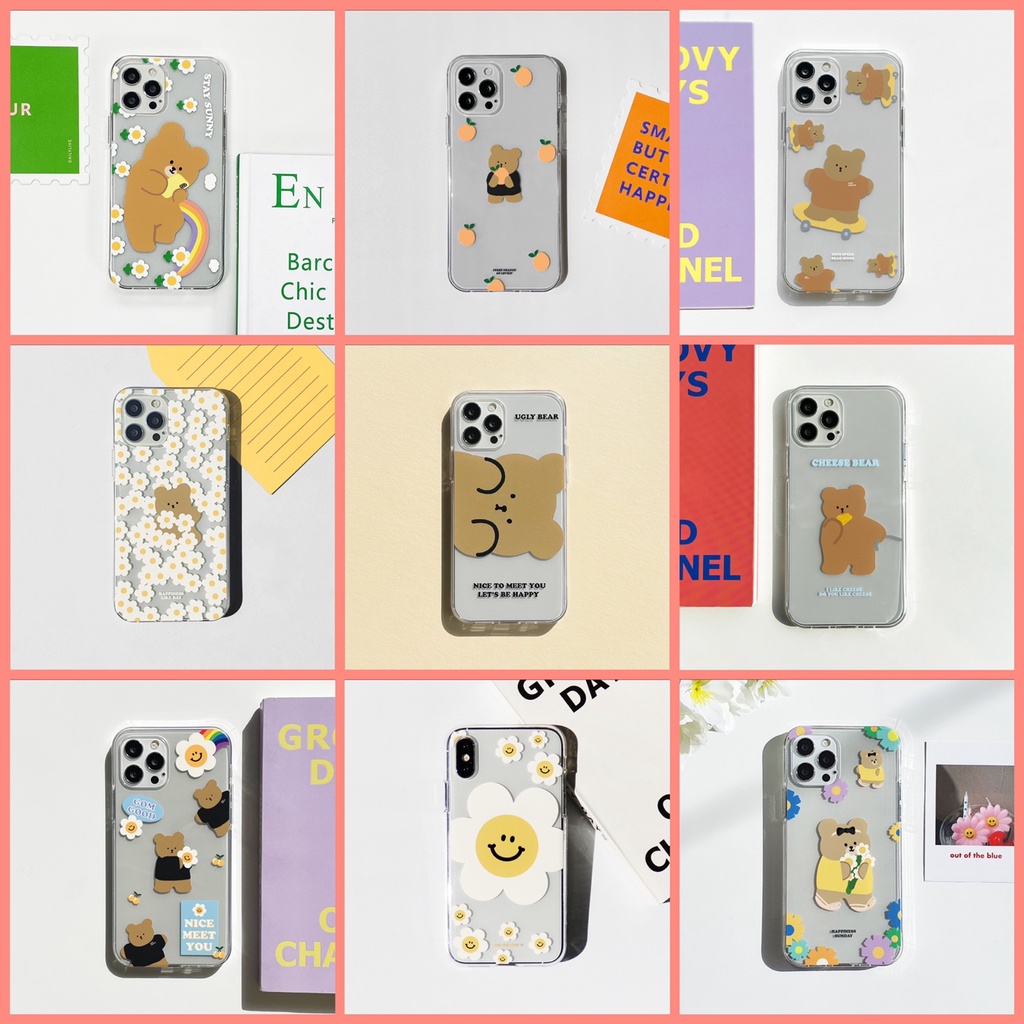 🇰🇷【 Korean Phone Case 】 Clear Jelly Cute Case Collection Premium Unique Korea Hand Made MOMO Compatible for iPhone 8 xs xr 11pro 11 12 12pro mini 13 Galaxy