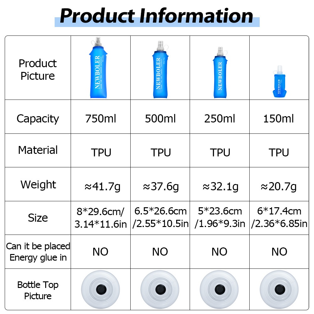 Newboler 150ml 250ml 500ml 750ml Soft Flask TPU ซิลิโคนขวดน้ําพับได้สําหรับกีฬากลางแจ้งเดินทางวิ่งจ๊อกกิ้งฟิตเนสขวดนุ่มแบบพกพา