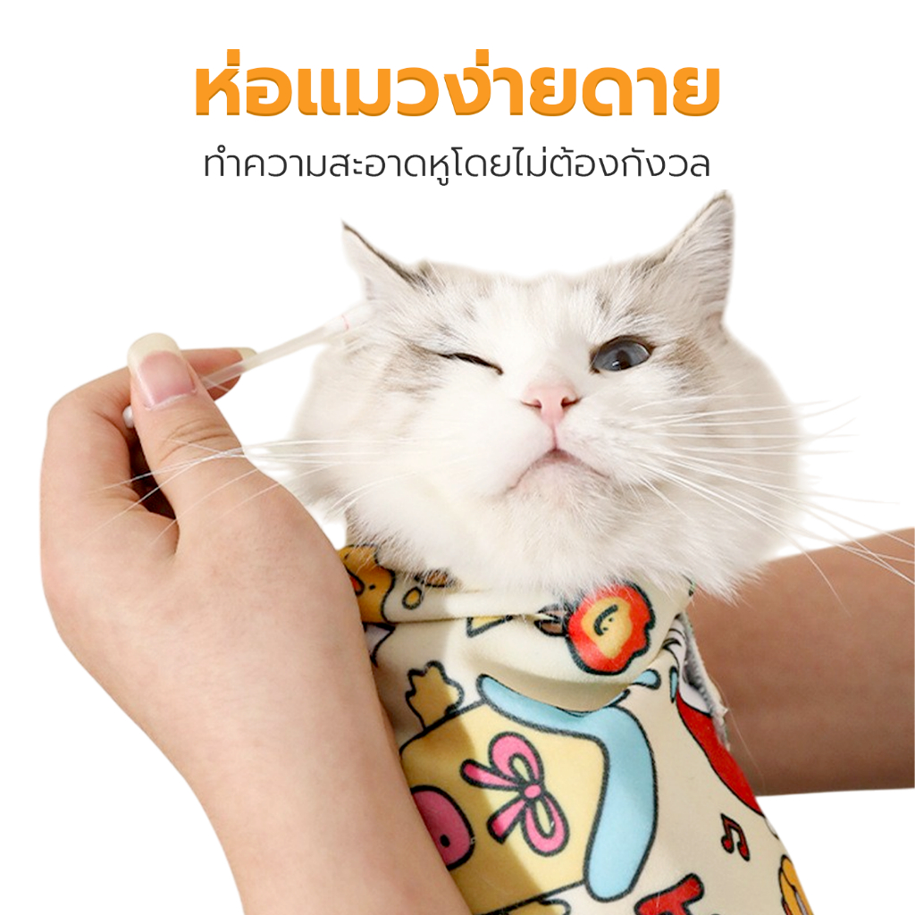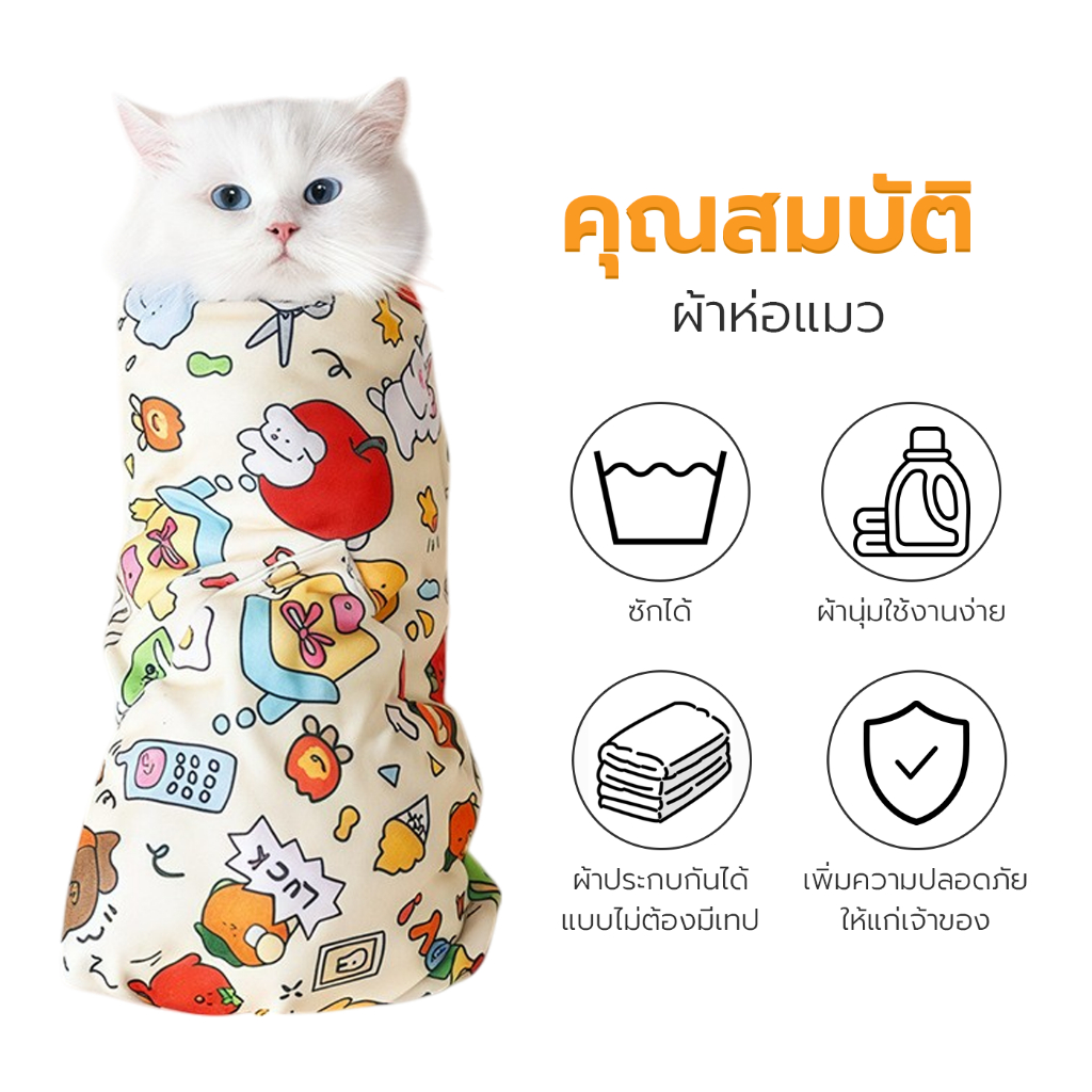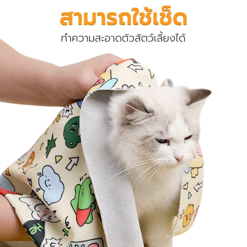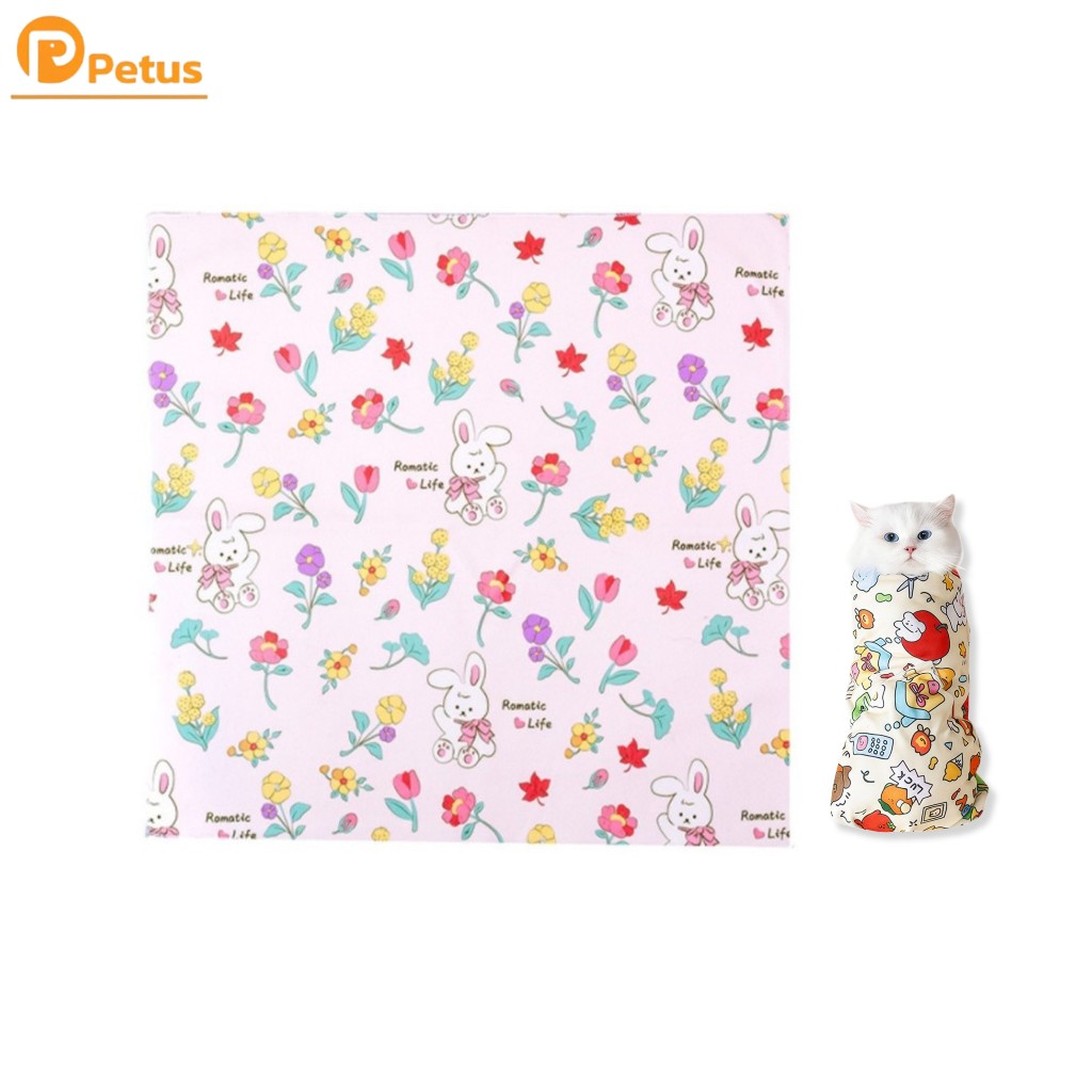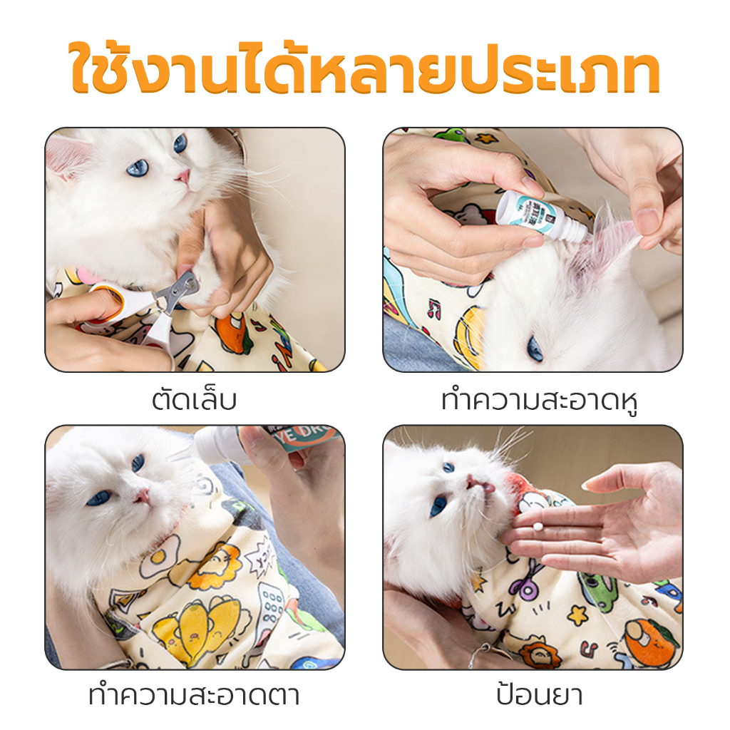 ผ้าห่อตัวแมว ผ้าห่อสัตว์เลี้ยง ชุดกักเก็บแมว Cat Wrap Cloth ผ้านุ่ม กันดิ้น กันข่วน Petus pet
