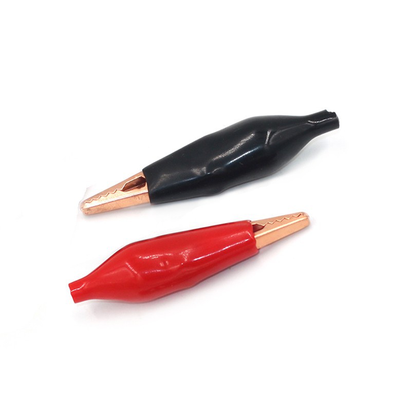 คลิปหนีบจระเข้ไฟฟ้า ทองแดง 45 มม. 35 มม. พร้อมบูทพลาสติก 1 คู่