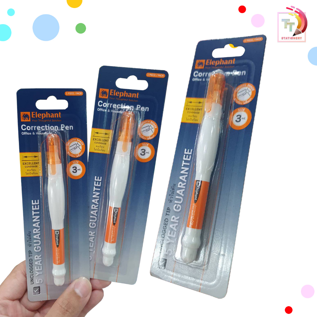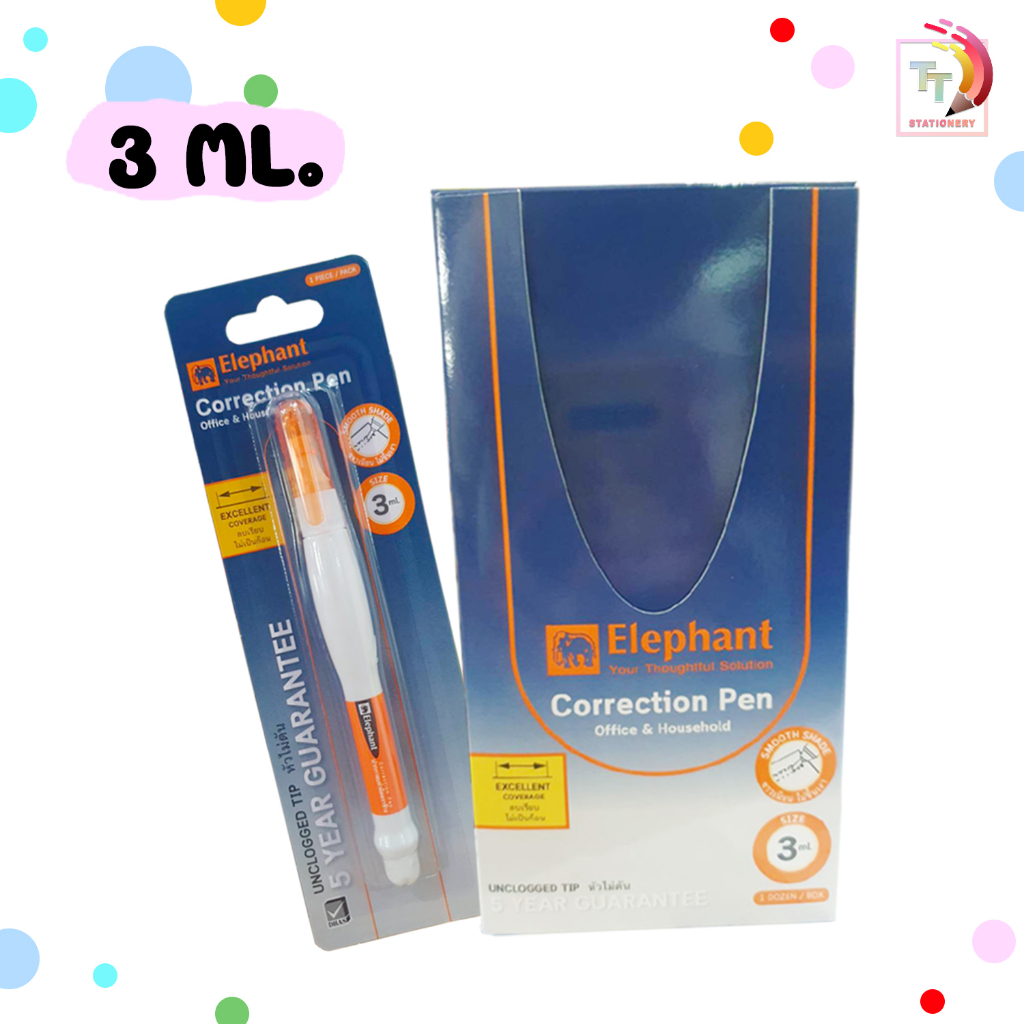 ( 12 ด้าม ) ปากกาลบคำผิด ขนาด 3 / 7มล. ตราช้าง Elephant ด้ามจับบีบถนัดมือ ( 12 ด้าม )