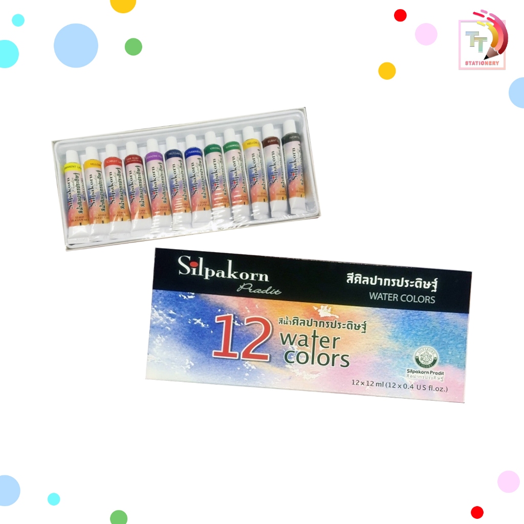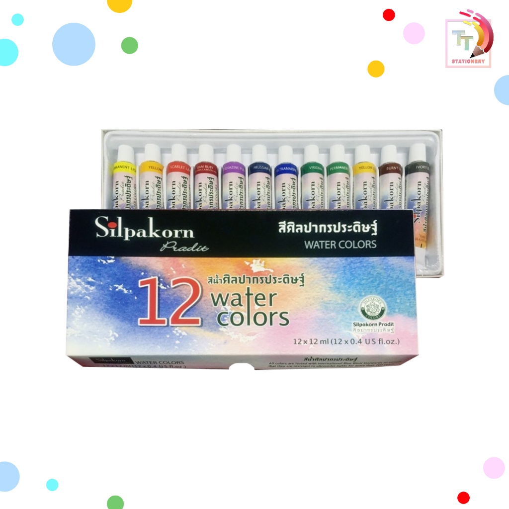 SILPAKORN PRADIT สีน้ำแบบหลอด 12 สี ศิลปากรประดิษฐ์ ขนาด 12 ml. ( จำนวน 1 กล่อง )