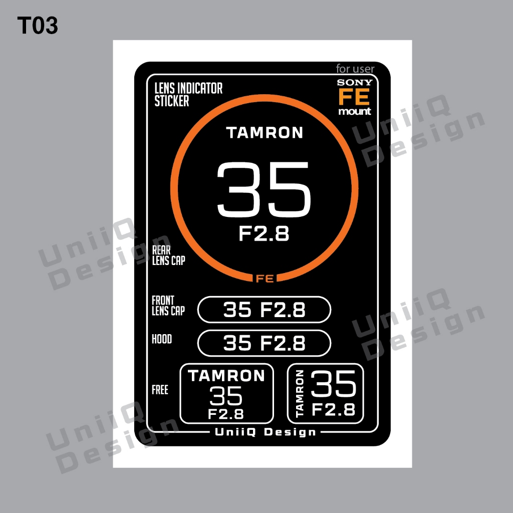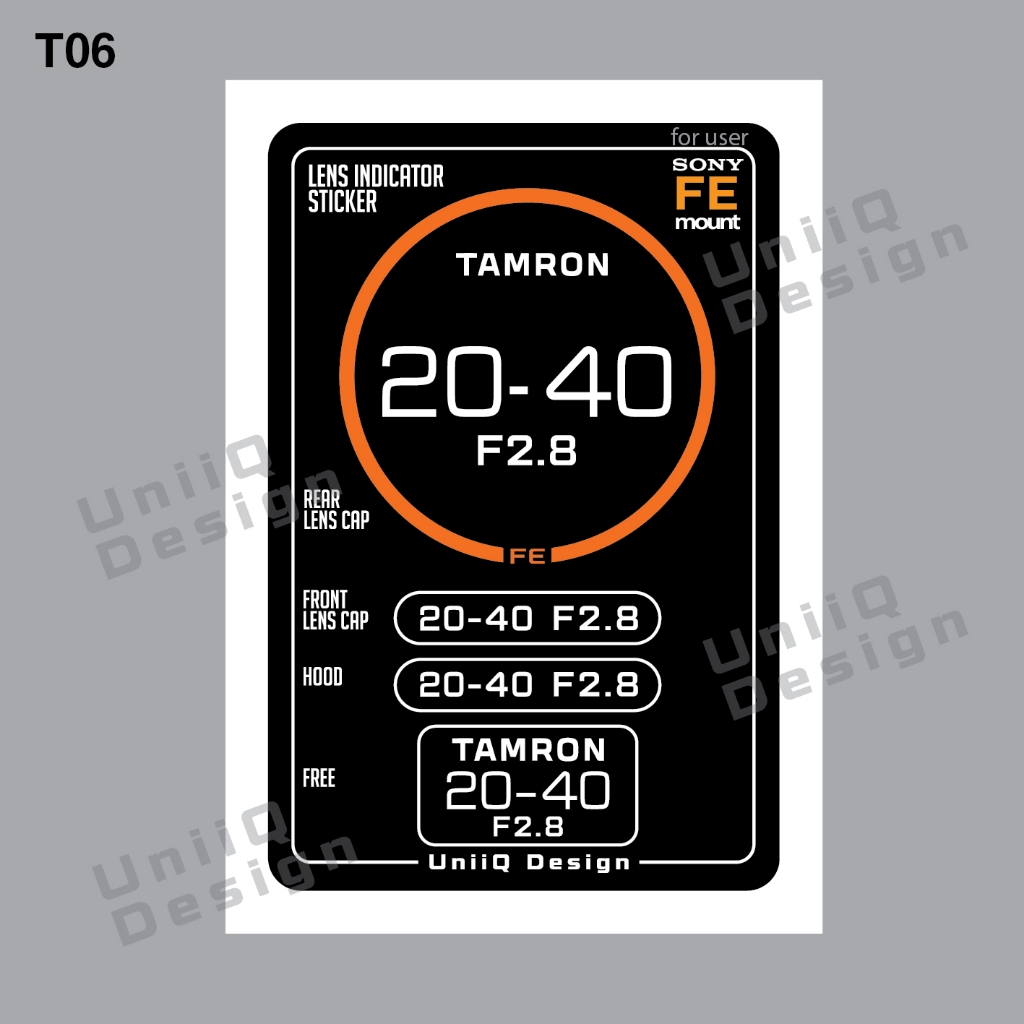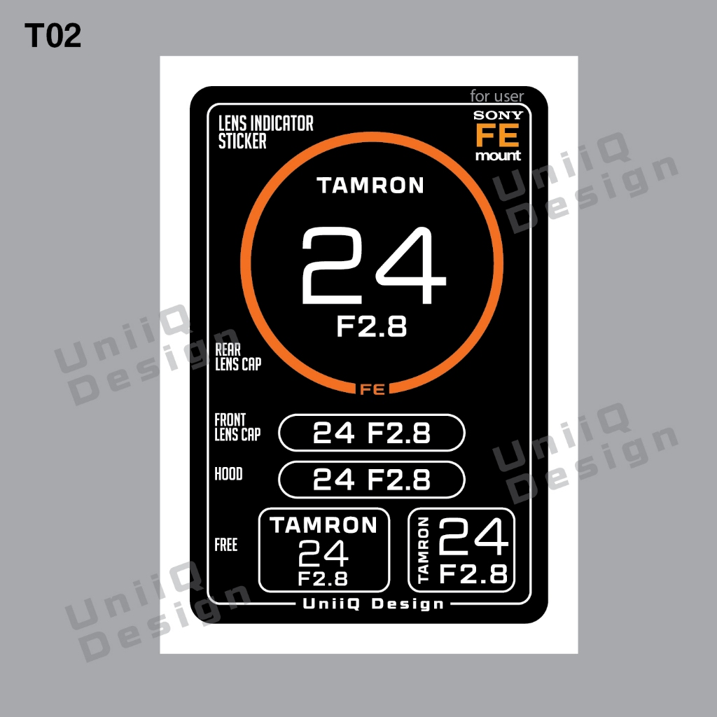 Sticker Lens TAMRON [FE mount Sony] สติกเกอร์แปะฝาท้ายเลนส์ บอกระยะ บอกค่าF แปะฝาหน้าหลังเลนส์ ฮูด