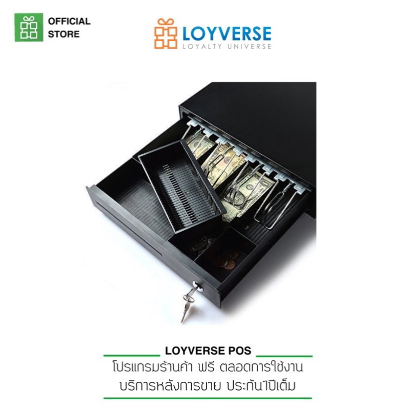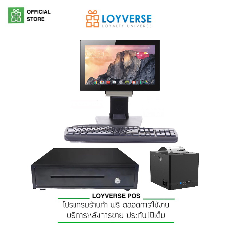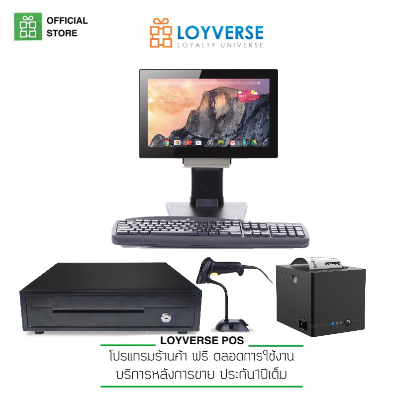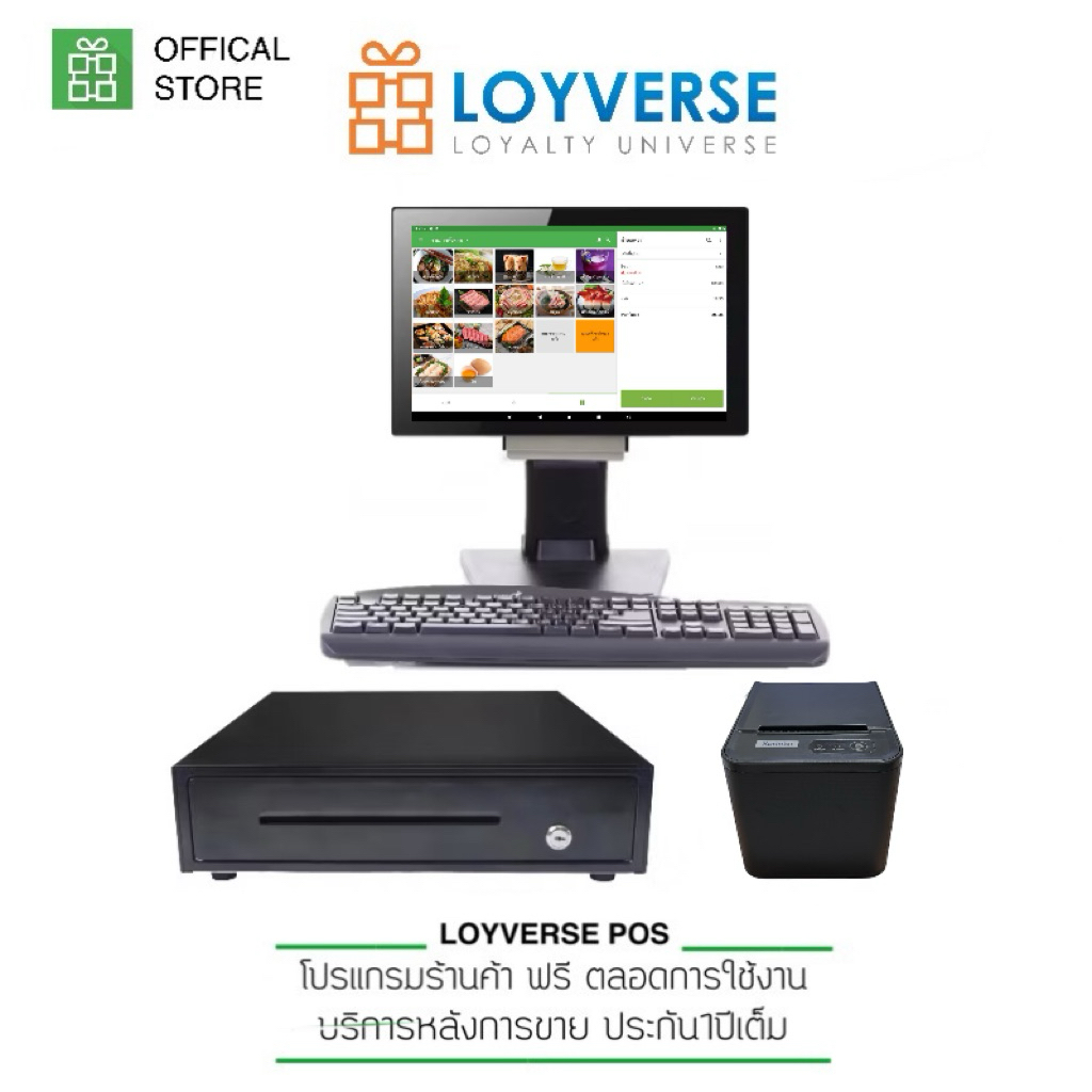 LOYVERSE POS 15.6" : พร้อมโปรแกรมและอุปกรณ์สำหรับขายหน้าร้าน All-IN-ONE เครื่องพิมพ์ 80T LAN สแกนเนอร์ USB ลิ้นชัก AUTO