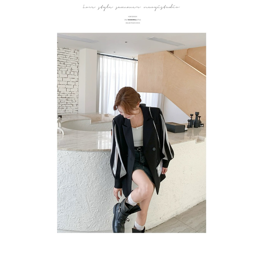 E521 สูทเบเซอร์แขนริ้วขาว สุดเก๋ งานจริงสวยมาก พร้อมส่ง