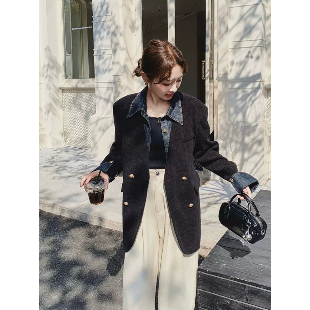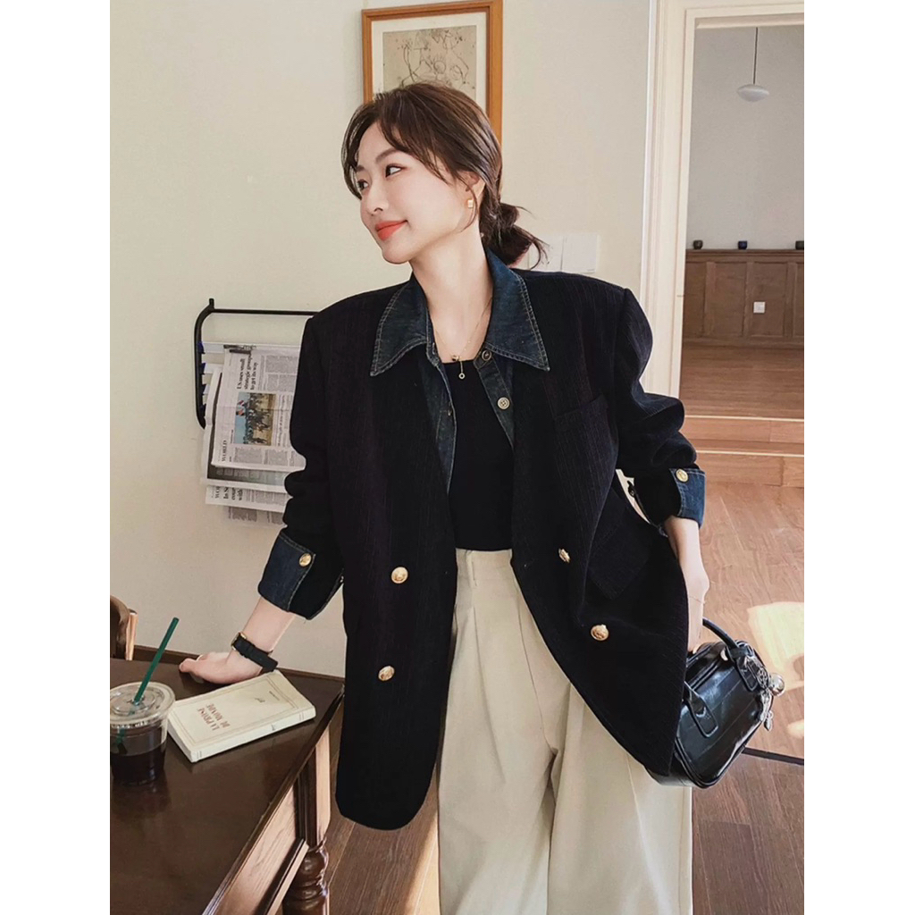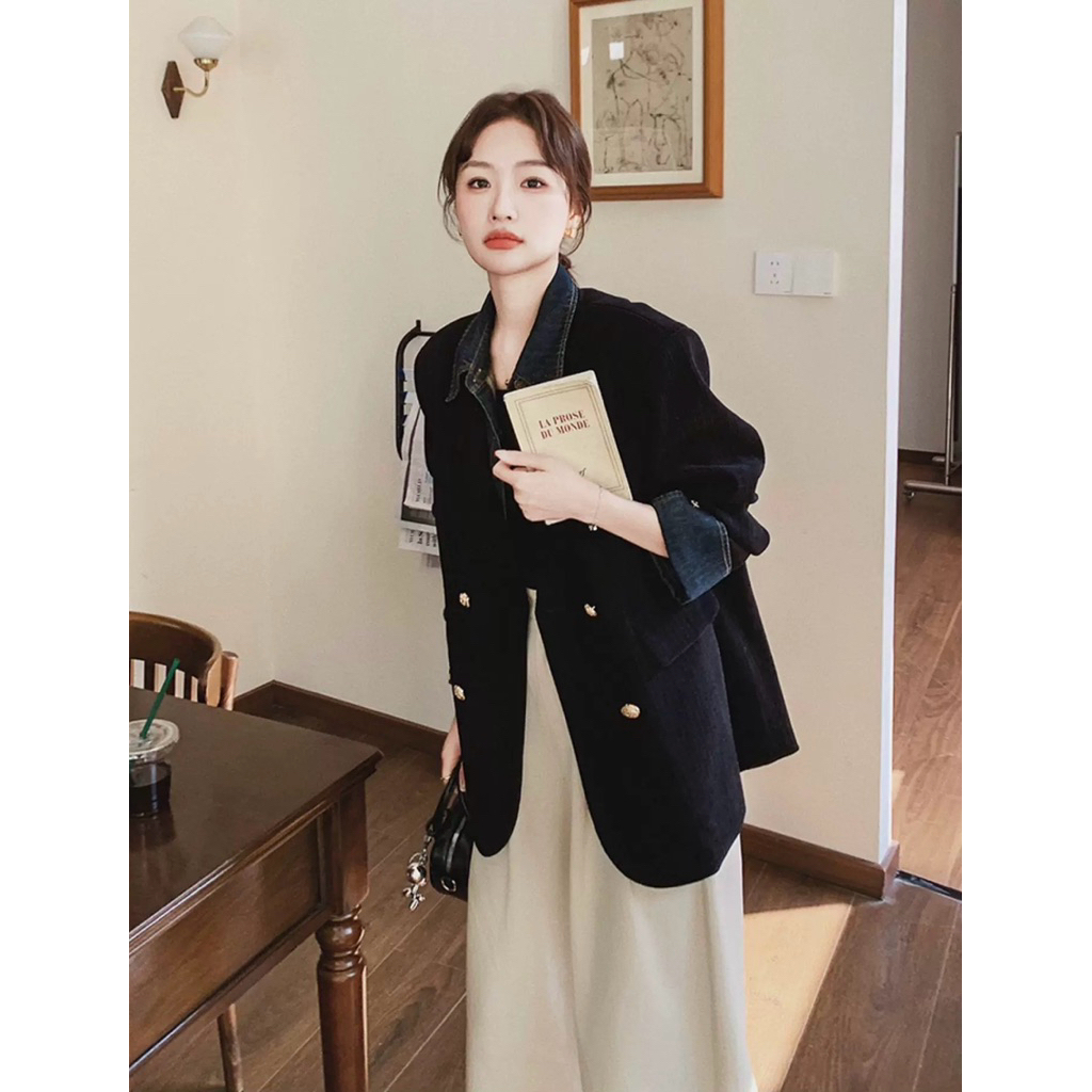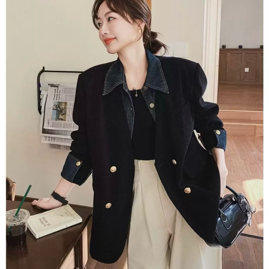 E54 สูทเบเซอแต่งแถบยีนส์ ผ้าริบลูกฟูก งานสุดเก๋ พร้อมส่ง