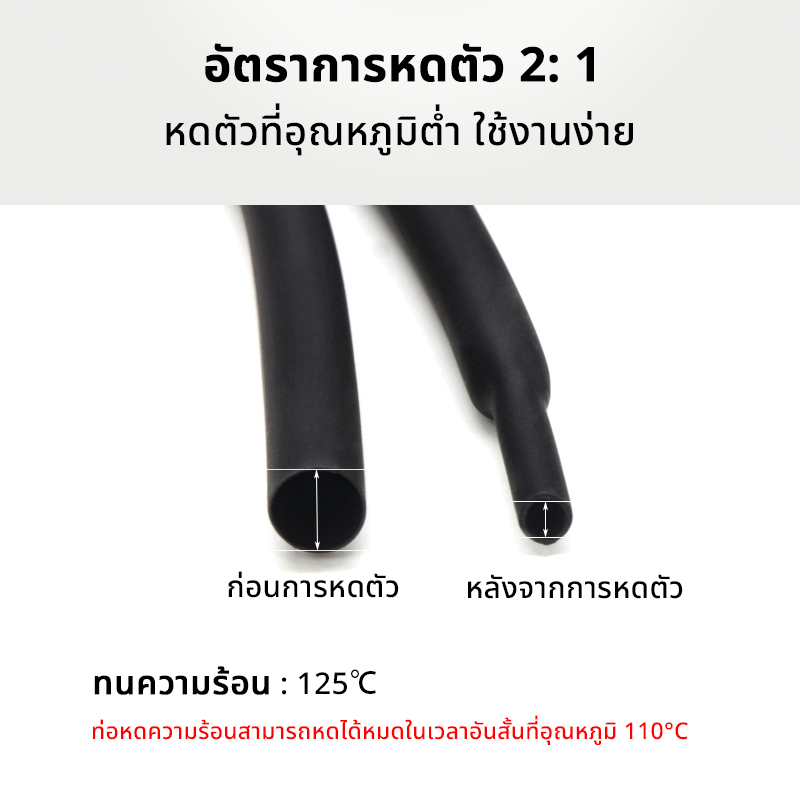 สีดำ ท่อหด ท่อหดหุ้มสายไฟ อย่างดี ขนาด3มิล -10มิล อัตราการหดตัว 2: 1ฉนวนหุ้มสายไฟ Heat Shrink Tube ขายเป็นเมตร
