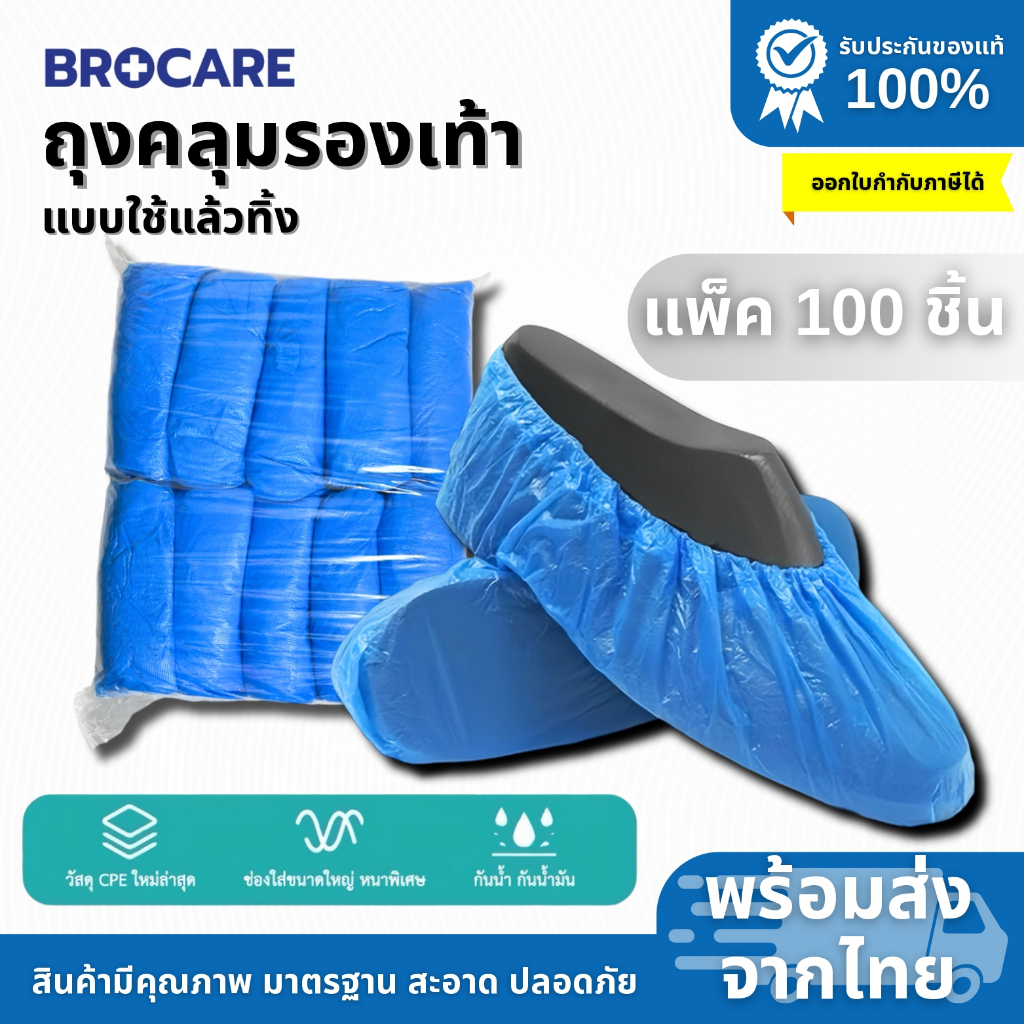 ถุงคลุมรองเท้าแบบใช้แล้วทิ้ง ถุง คลุมรองเท้าวัสดุพลาสติก cpe (แพ็ค 100ชิ้น)