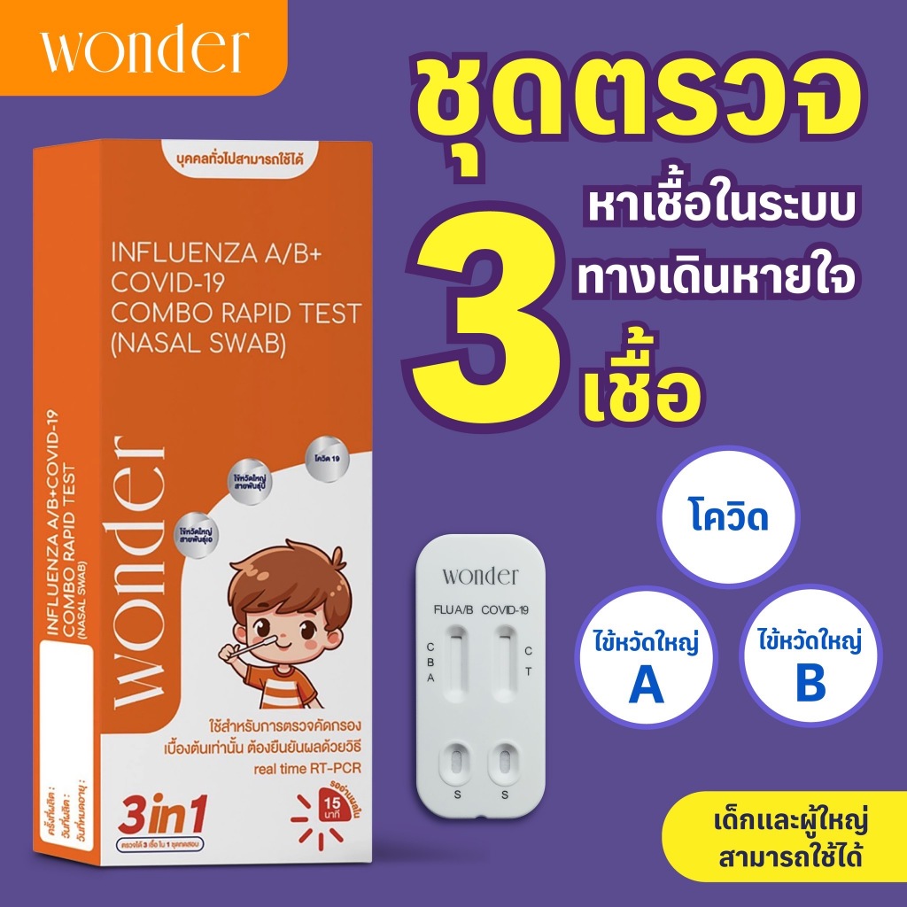 Wonder 3in1 ชุดตรวจไข้หวัดใหญ่ สายพันธุ์ A และ B/ โควิค Covid-19 พร้อมส่ง ส่งไว