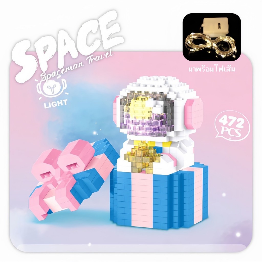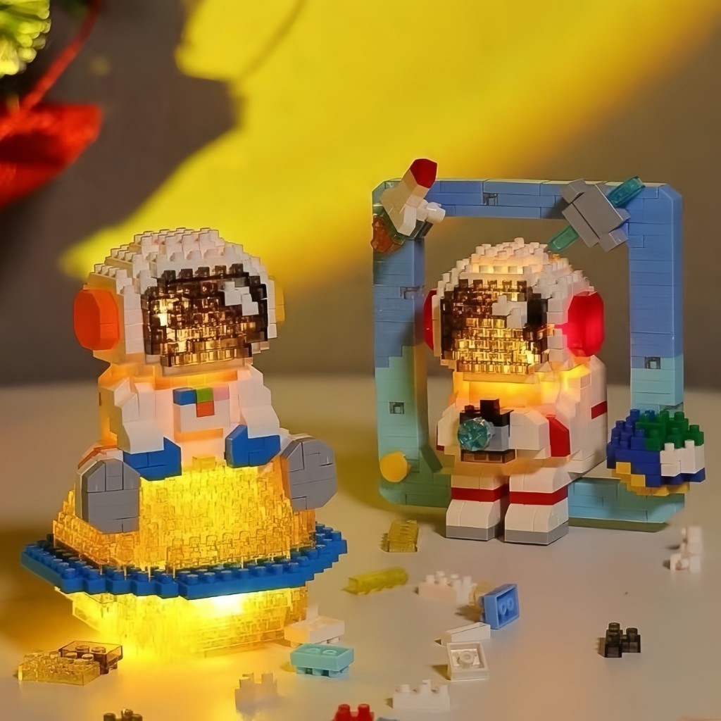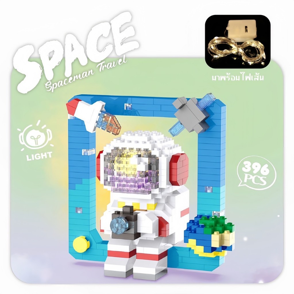 บล็อกตัวต่ออวกาศ รูปนักบินอวกาศ 3 มิติ ของเล่นสำหรับเด็ก พร้อมไฟ DIY