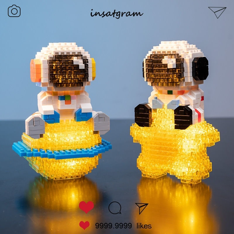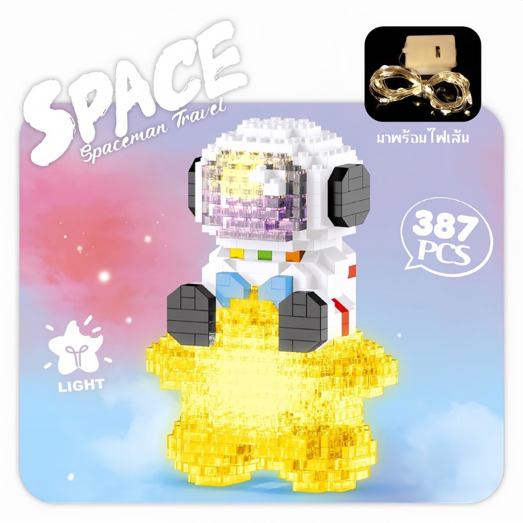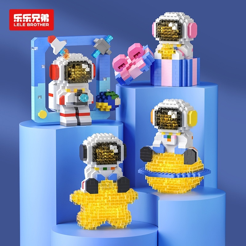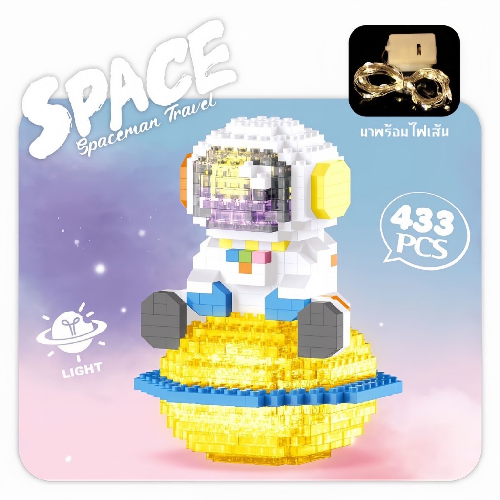 บล็อกตัวต่ออวกาศ รูปนักบินอวกาศ 3 มิติ ของเล่นสำหรับเด็ก พร้อมไฟ DIY