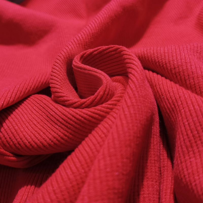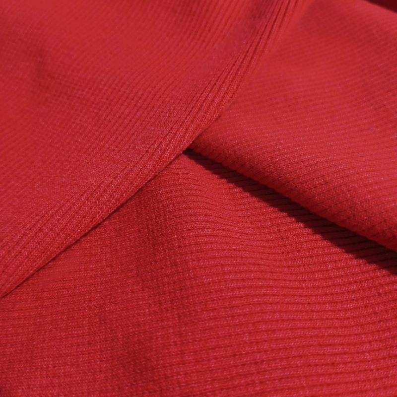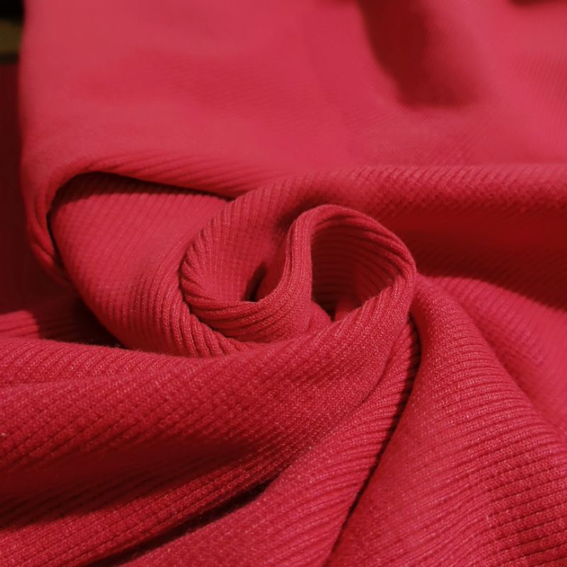 ผ้ายืด ผ้าร่อง 2x2 สีแดง เนื้อทีเค 300 แกรม เนื้อหนา ยืดเยอะ ขายเป็นเมตร