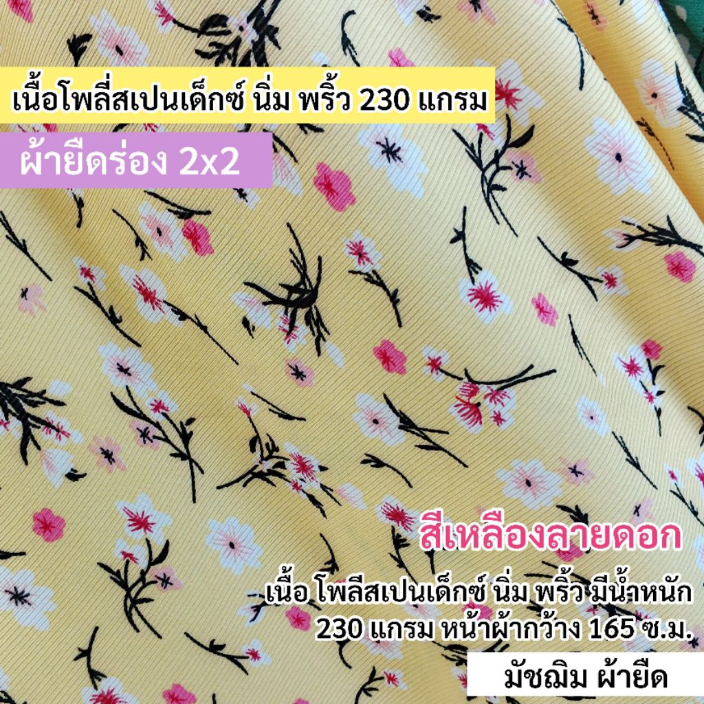 ผ้ายืดเมตร รวมสี ผ้ายืดเรียบ ร่อง รังผึ้ง ลายดอก, ลายทหาร, ฯลฯ