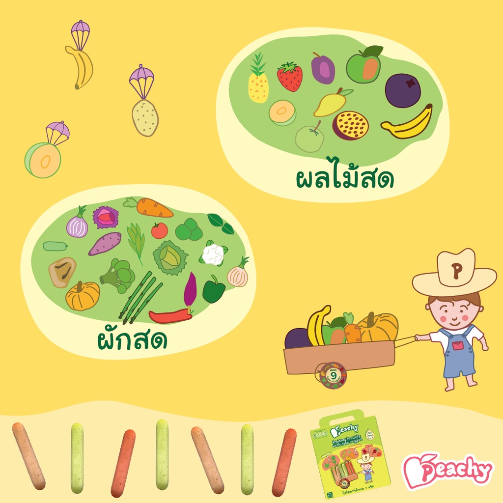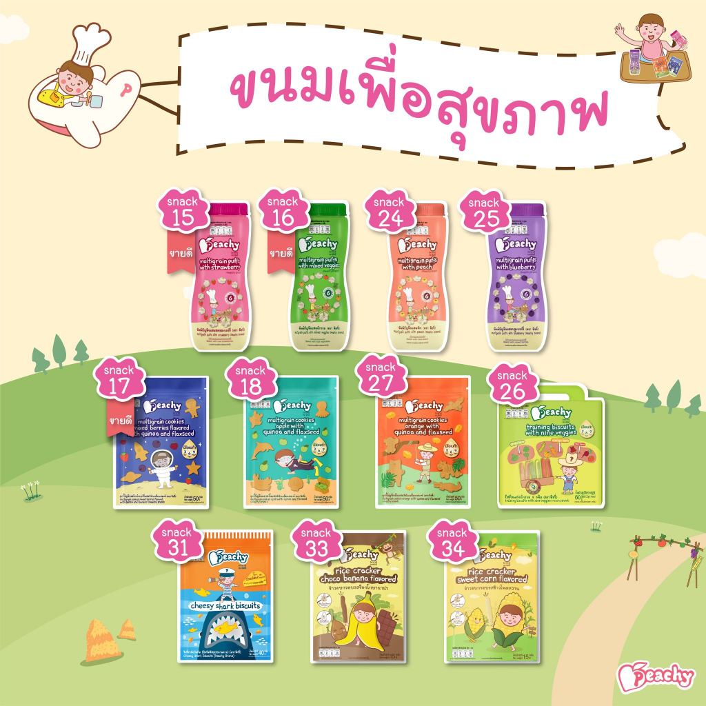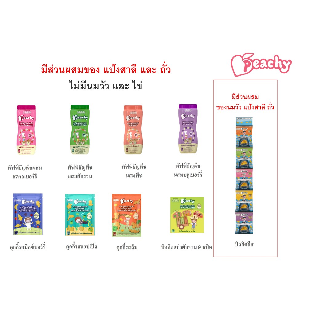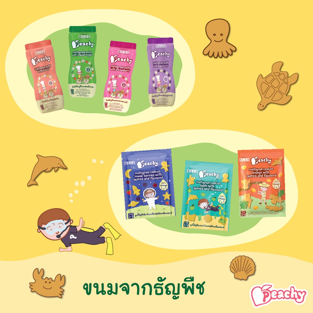 Peachy ขนมเด็กเสริมพัฒนาการ อาหารเสริ มเด็ก ฝึกเคี้ยว ฝึกการหยิบจับ บิสกิต คุกกี้และพัฟฟ์ (อายุ 1 ปี+)