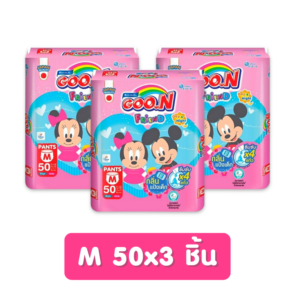 [ยกลังx3] Goon กูนน์ เฟรนด์ ผ้าอ้อมเด็ก รุ่นกลิ่นแป้งเด็ก/ไม่มีกลิ่น เพิ่มขอบขากระชับ (ไซส์ S-3XL) แพมเพิสเด็ก