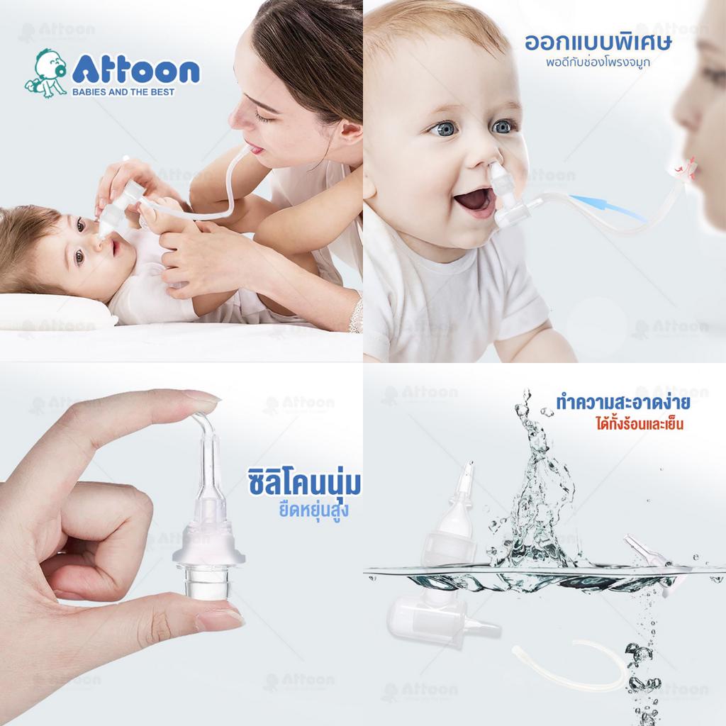 Attoon ที่ดูดน้ำมูก หัวซิลิโคน สายยางดูดน้ำมูก สำหรับเด็ก แอทตูน ที่ดูดน้ำมูกเด็ก ช่วยลดการน้ำมูก ลูกยางดูดน้ำมูก