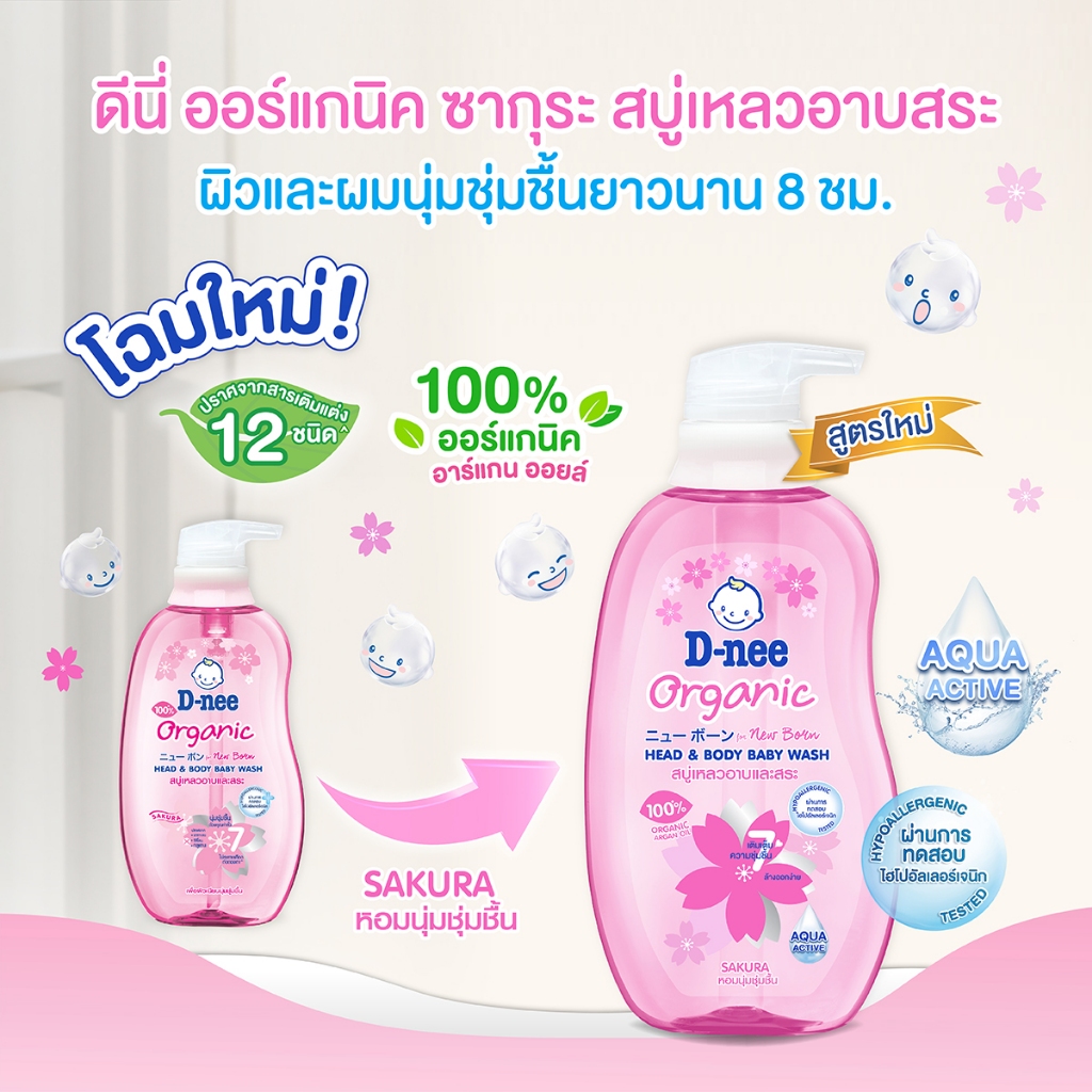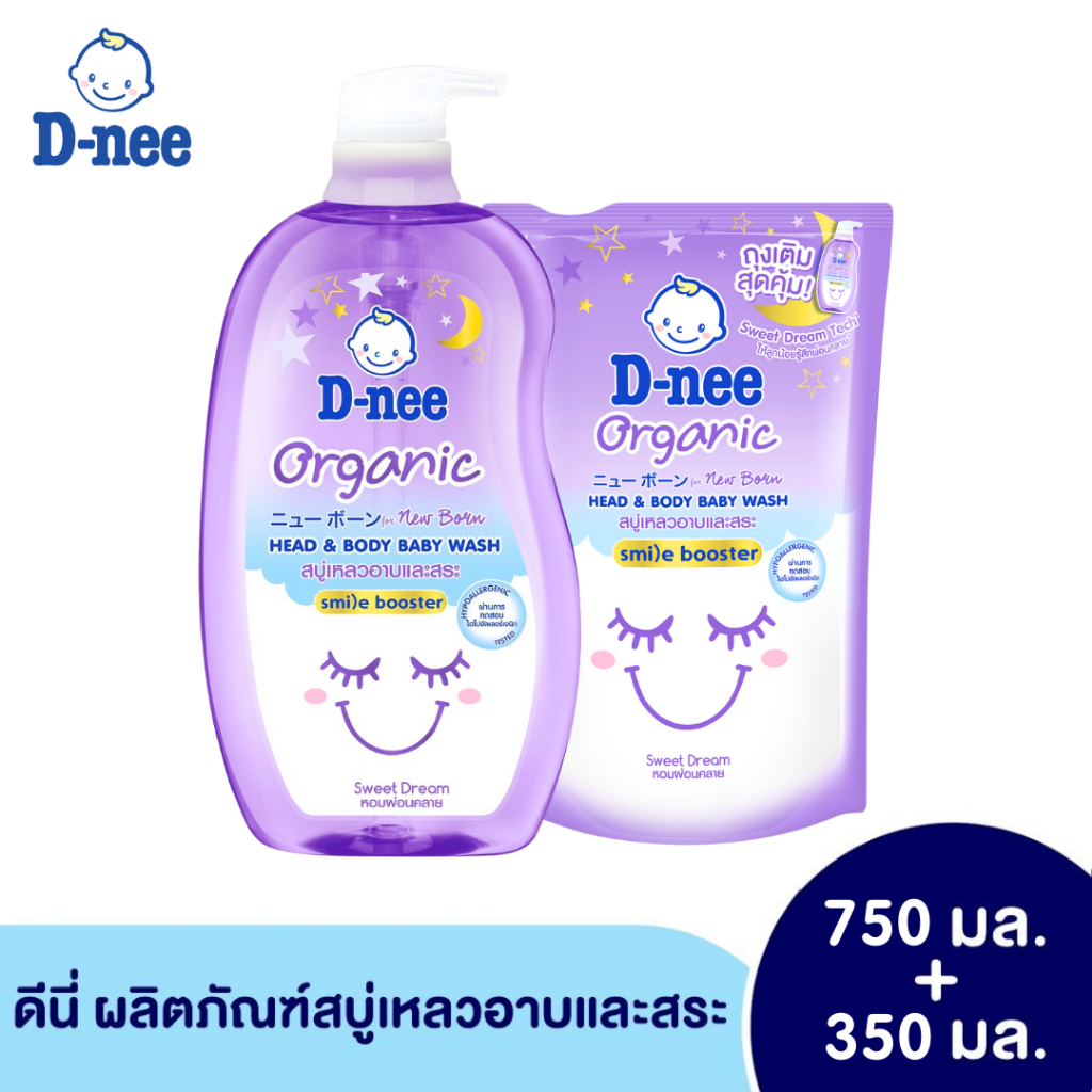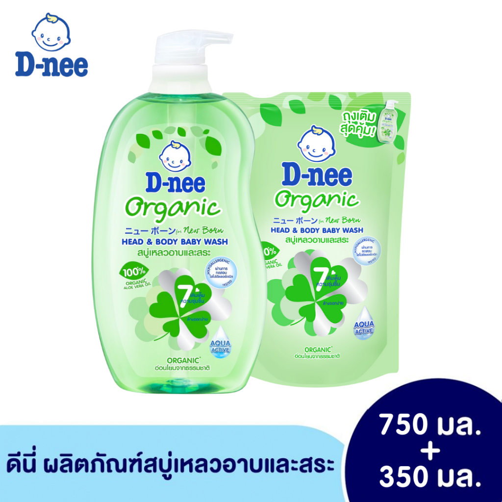 [ฟรีถุงเติม] D-nee ดีนี่ ออร์แกนิค สบู่ เหลวอาบและสระ หัวปั๊ม ฟรีแบบถุงเติม (ขนาด 750+350 มล.)