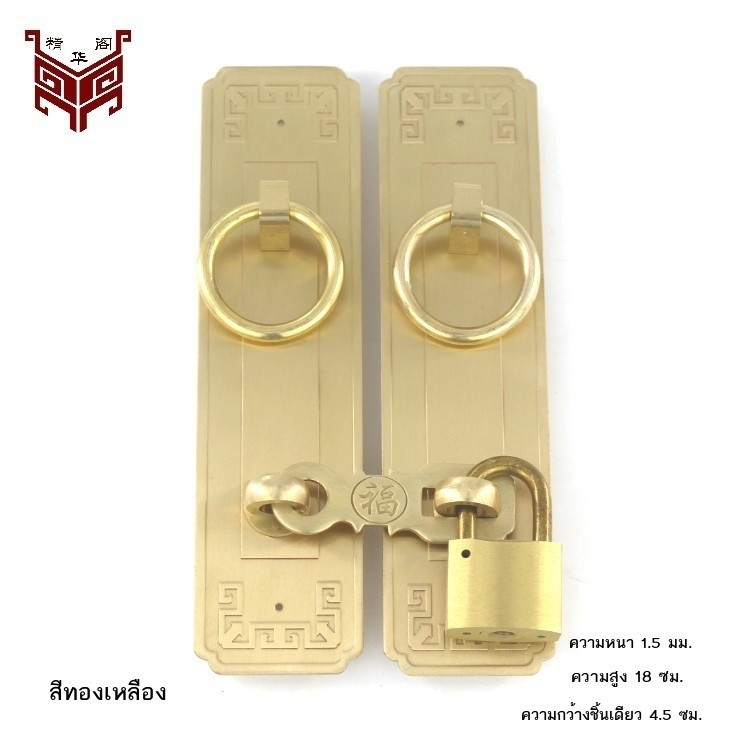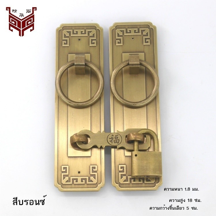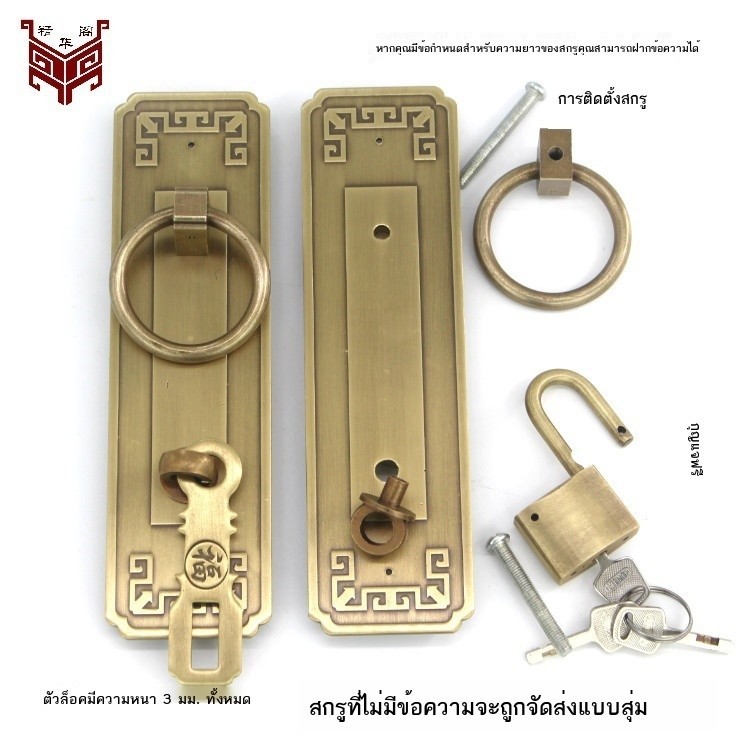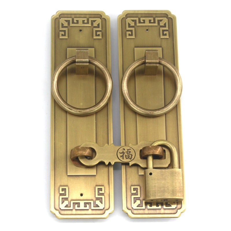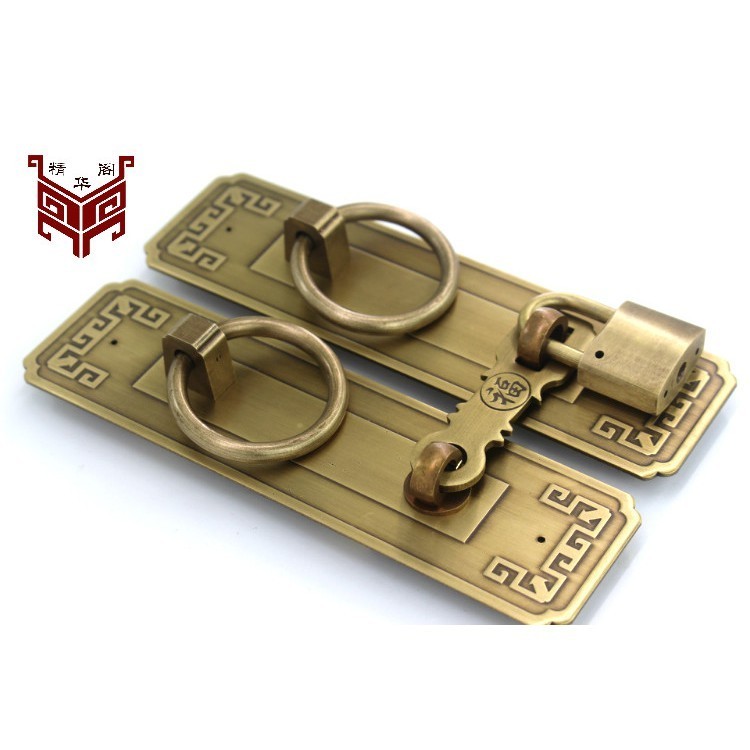 สลักล็อค กลอนประตูทองแดงบริสุทธิ์แบบจีนโบราณ กลอน, มือจับประตูตู้, ที่จับประตู, กุญแจประตูไม้ทองแดง