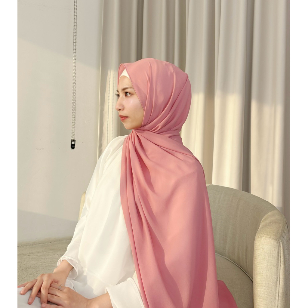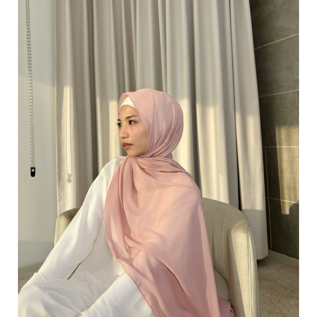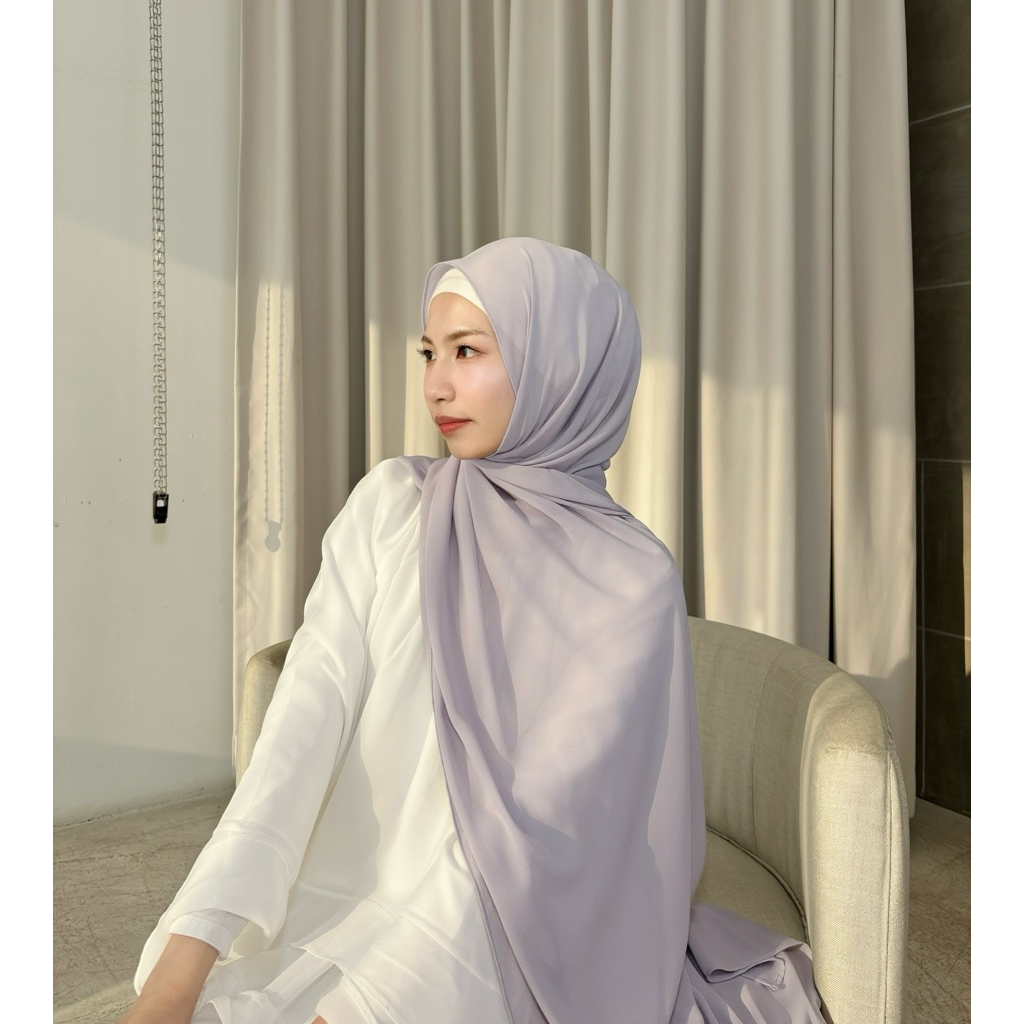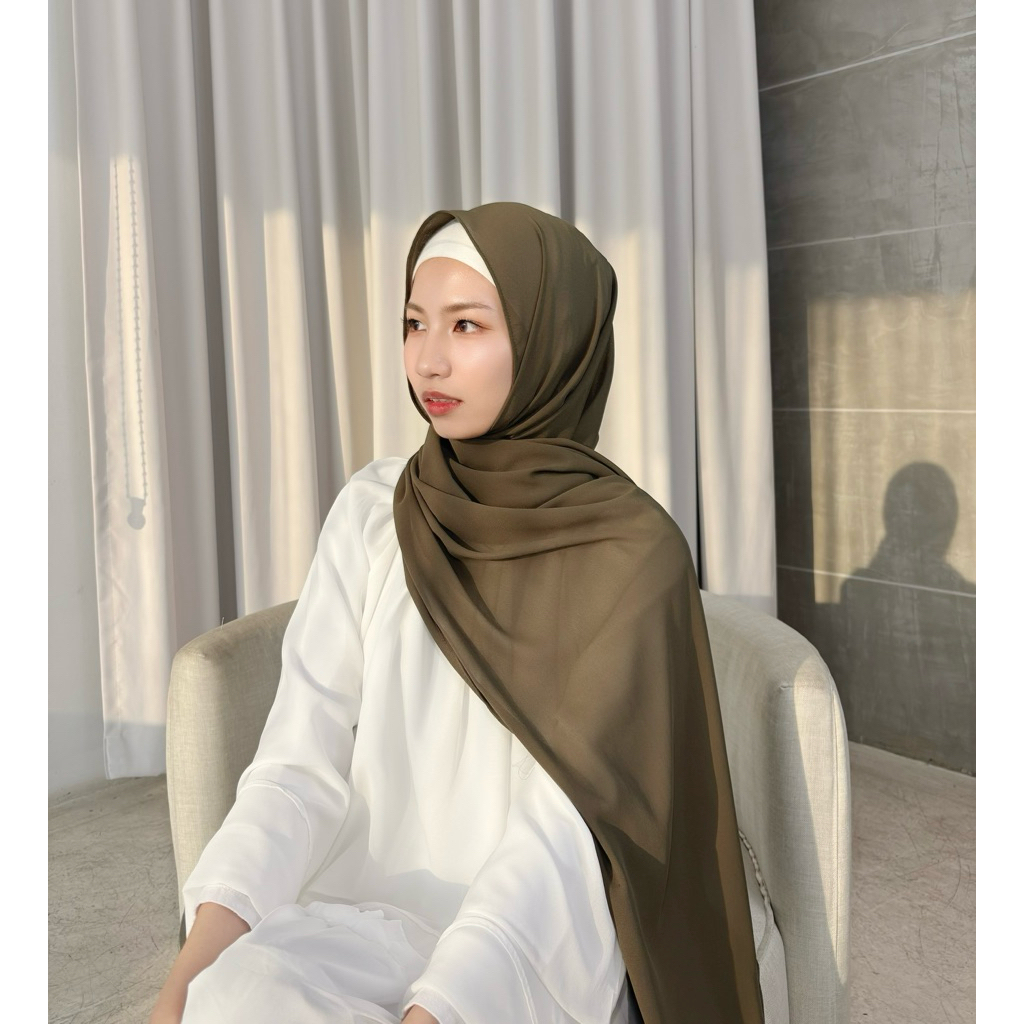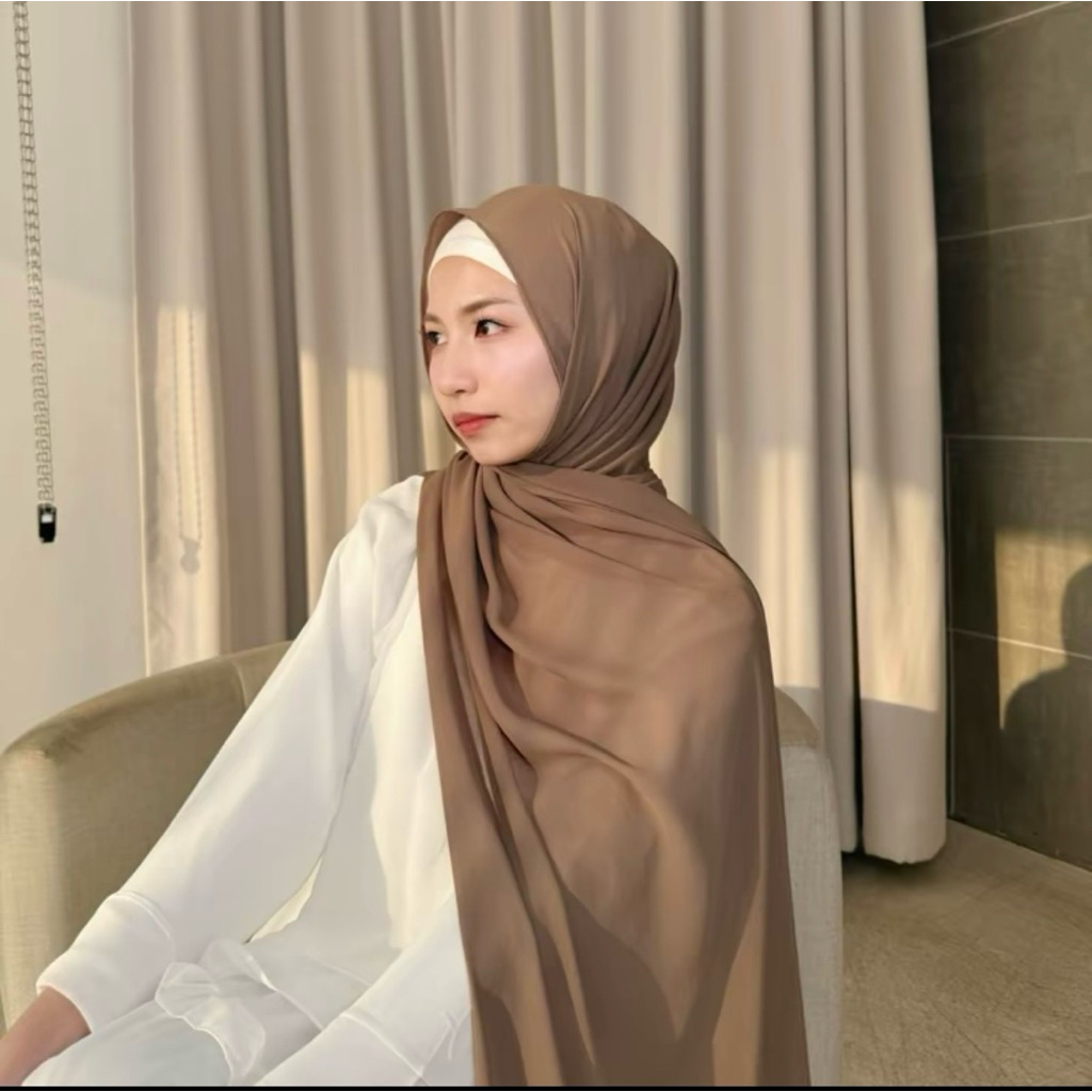 (พร้อมส่ง)Cl ~🌷Hijab ผ้าคลุมชีฟองเนื้อทราย พันยาว โทนสีละมุน✨ ติดป้าย