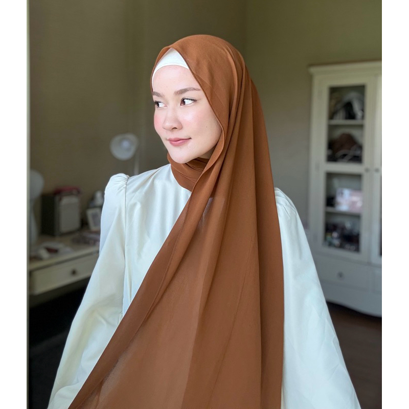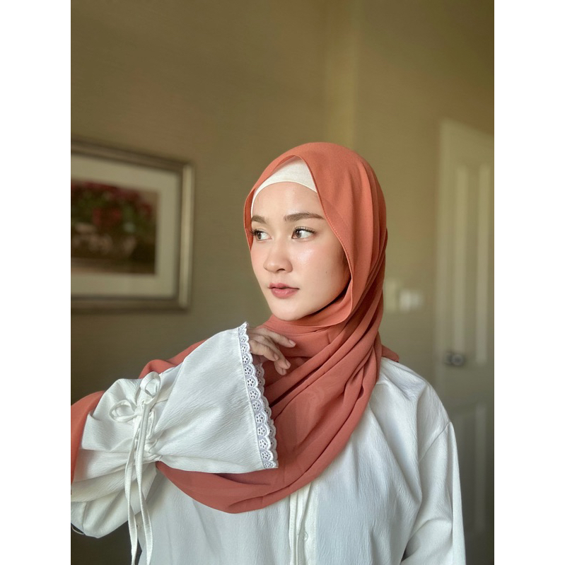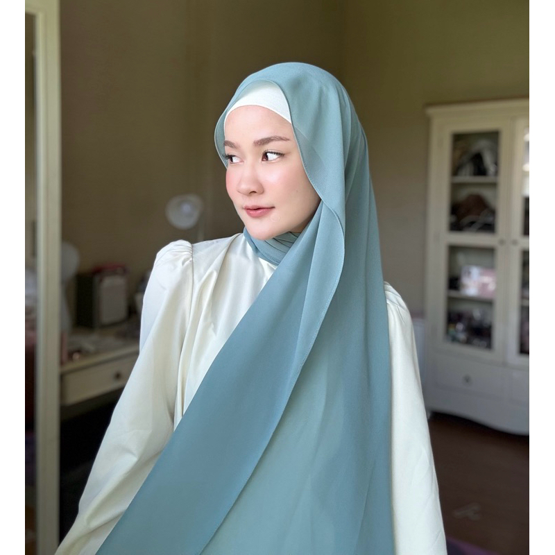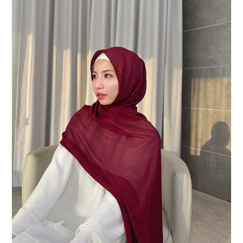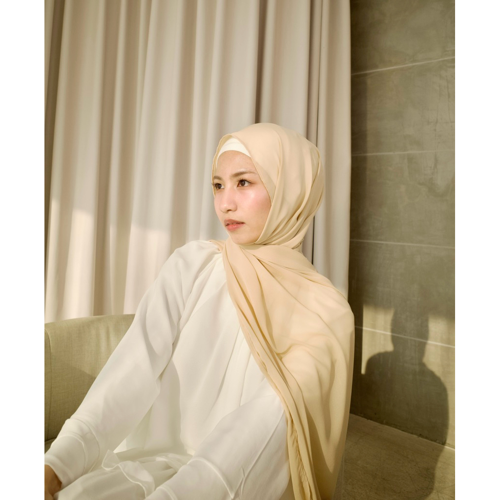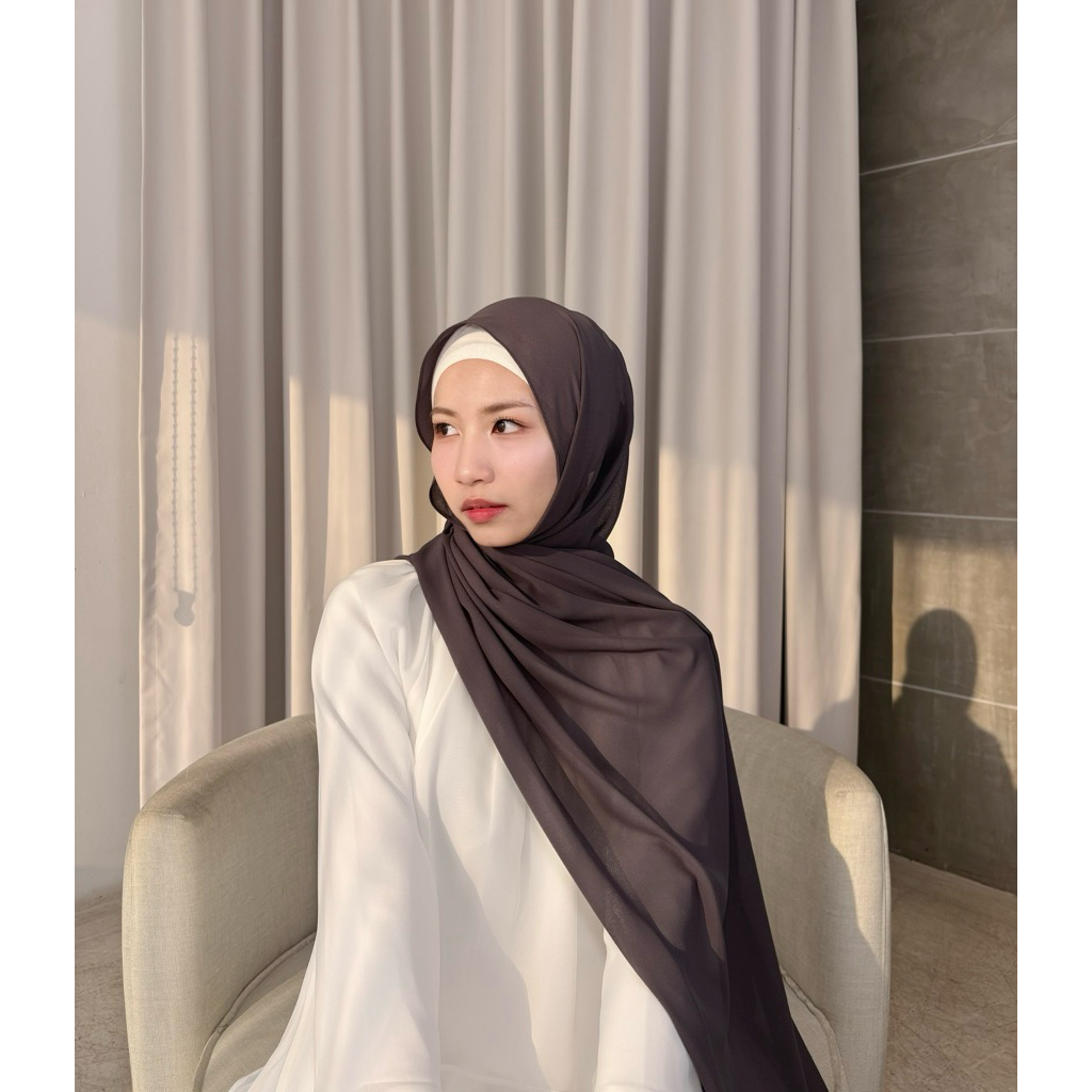 (พร้อมส่ง)Cl ~🌷Hijab ผ้าคลุมชีฟองเนื้อทราย พันยาว โทนสีละมุน✨ ติดป้าย