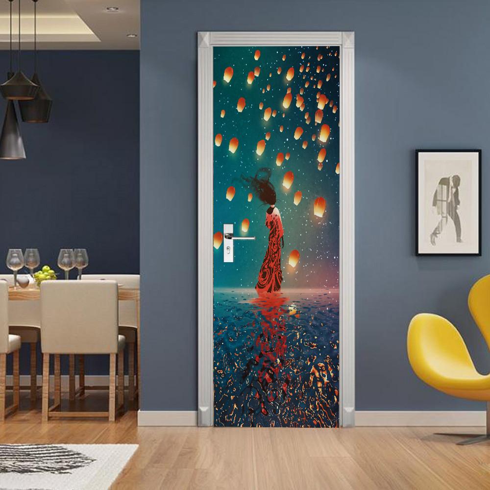 สติกเกอร์วอลล์เปเปอร์ กันน้ํา มีกาวในตัว ไซซ์ที่กําหนดเอง สําหรับติดตกแต่งประตู ตู้เสื้อผ้า ลิฟท์ ประตู ตกแต่งบ้าน