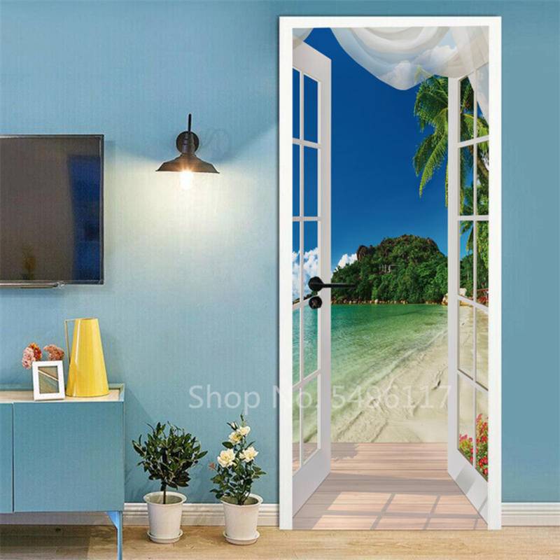 สติกเกอร์วอลเปเปอร์ ลายทิวทัศน์ทะเล ท้องฟ้าสีฟ้า มีกาวในตัว 3D สําหรับติดตกแต่งผนังบ้าน