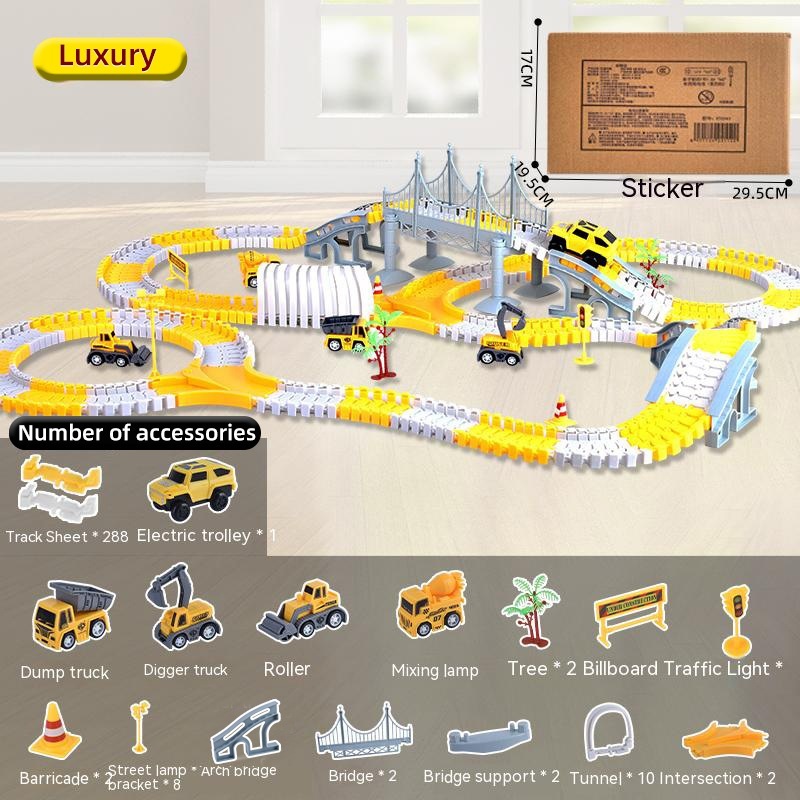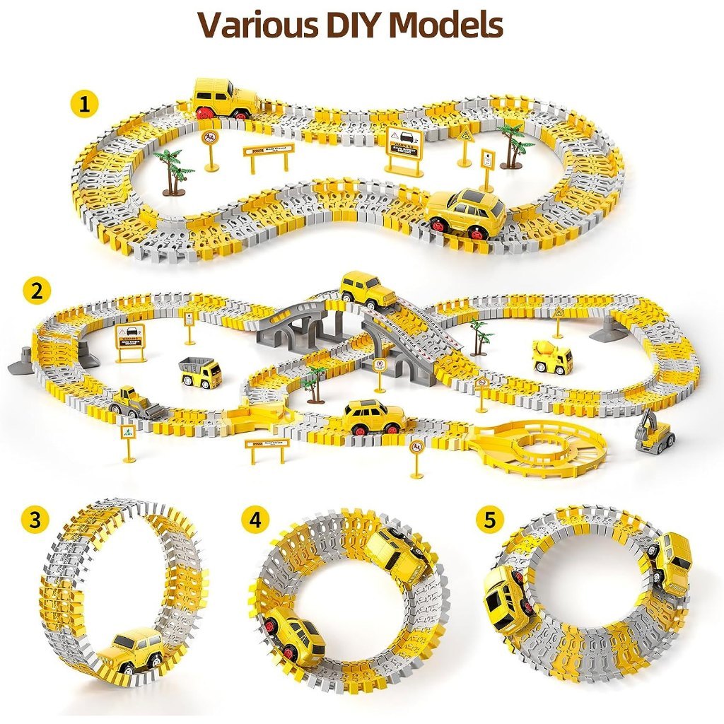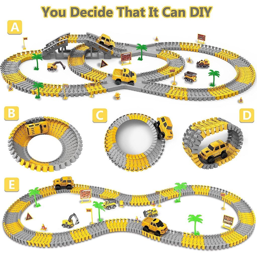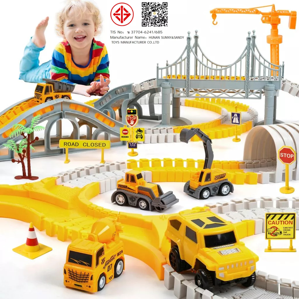 ของเล่นรถแข่งสนามก่อสร้างสำหรับเด็กชายอายุ 3-12 ปี ประกอบด้วย รถแข่งไฟฟ้า 1 คัน และรถบรรทุกก่อสร้าง 4 คัน