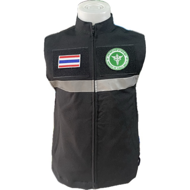 เสื้อกั๊กสาธารณสุข พร้อมโลโก้สาธารณสุข คอจีน มีซับในทั้งตัว กระเป๋า3จุด เสื้อกั๊กสีดำ เสื้อกั๊กสีขาว