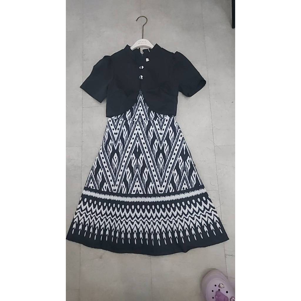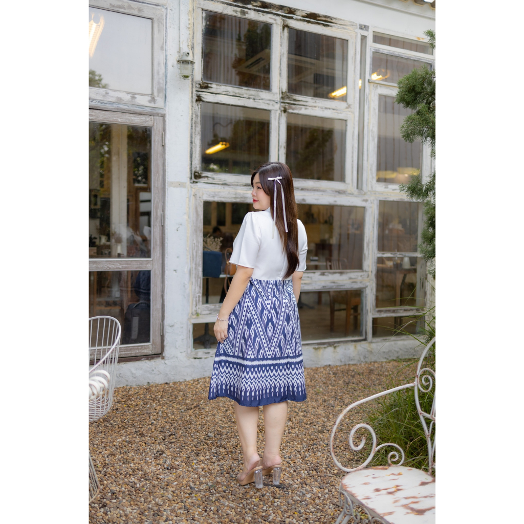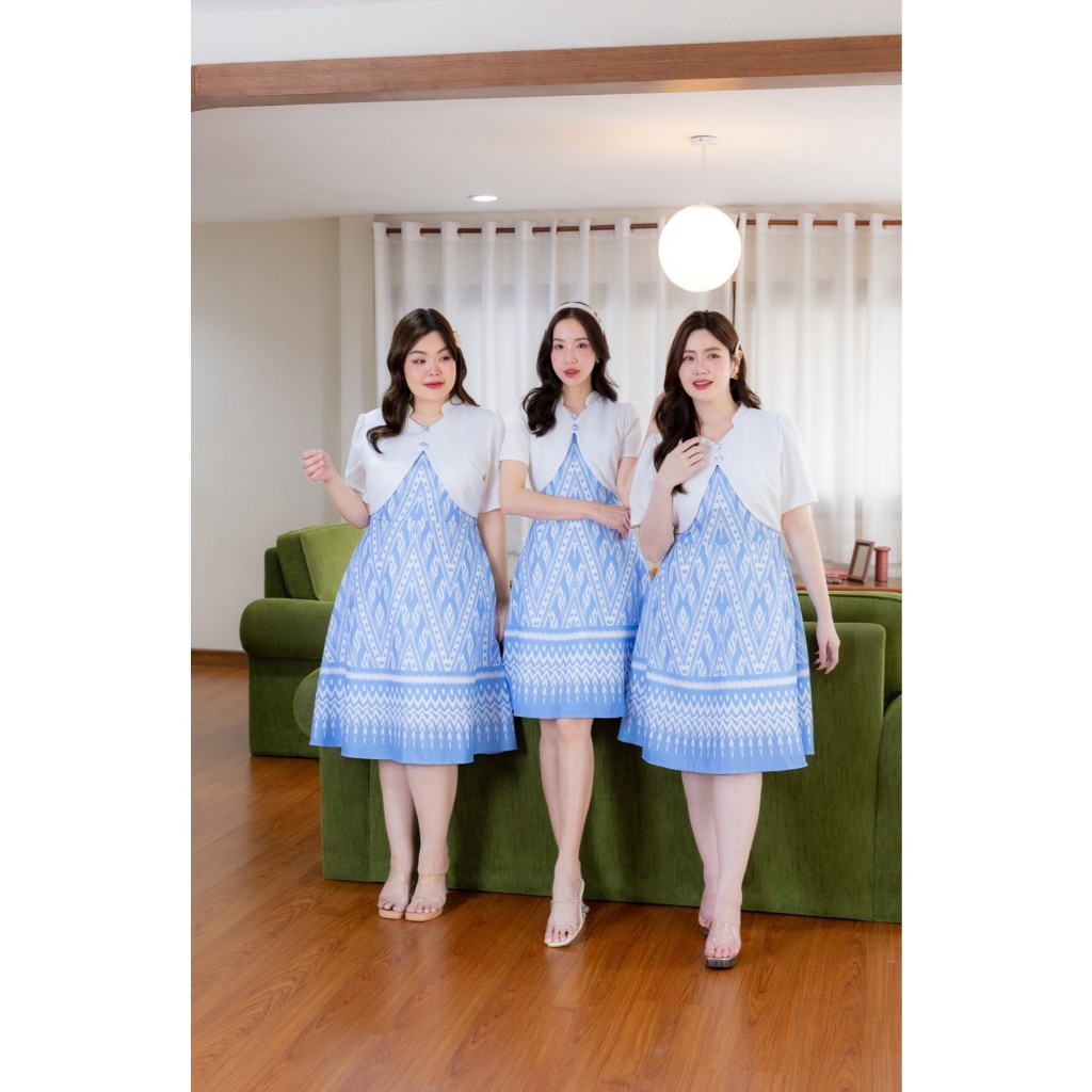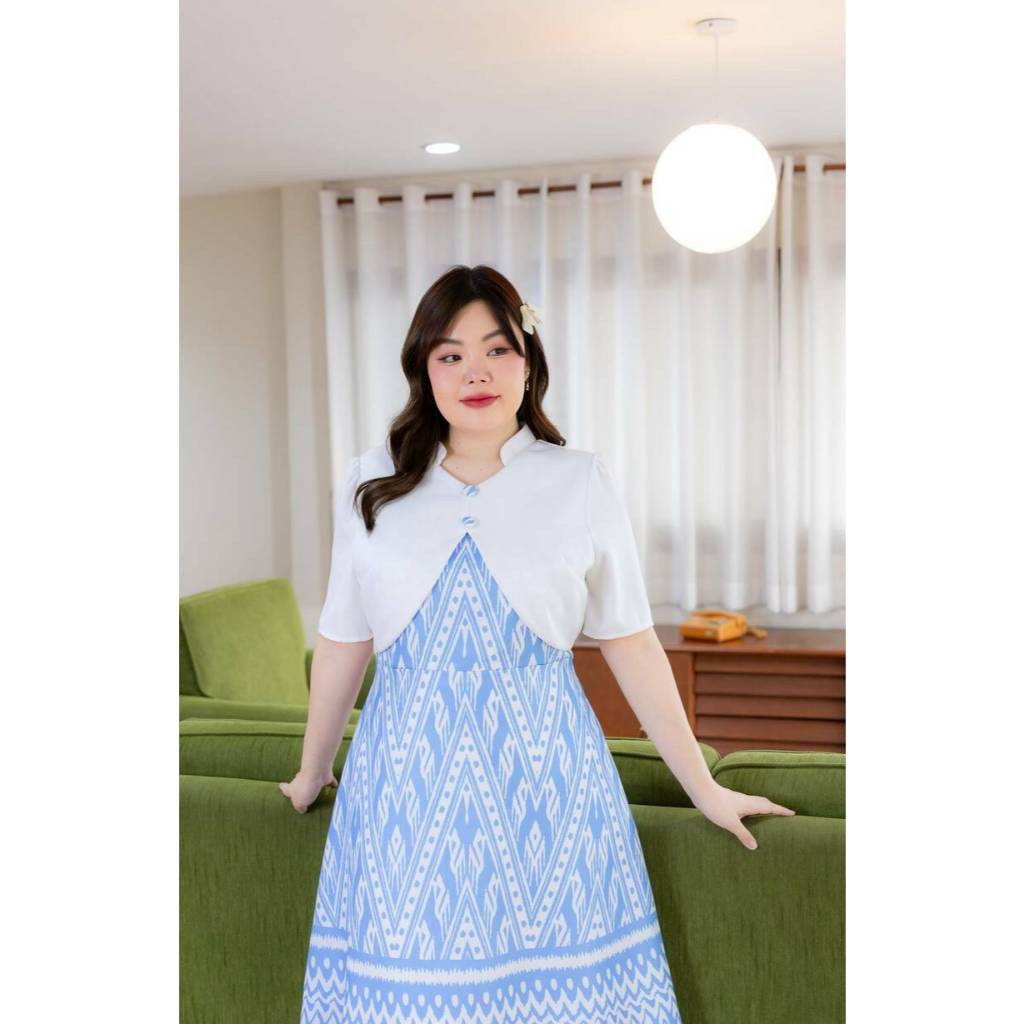 {S-7XL} 9484 งานป้าย Dress World เดรสสั้นทรงบาน คอจีน ช่วงล่างลายไทย เดรสทำงาน