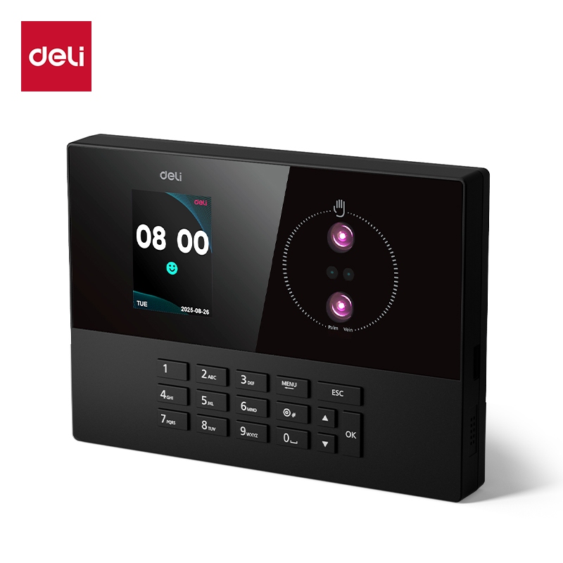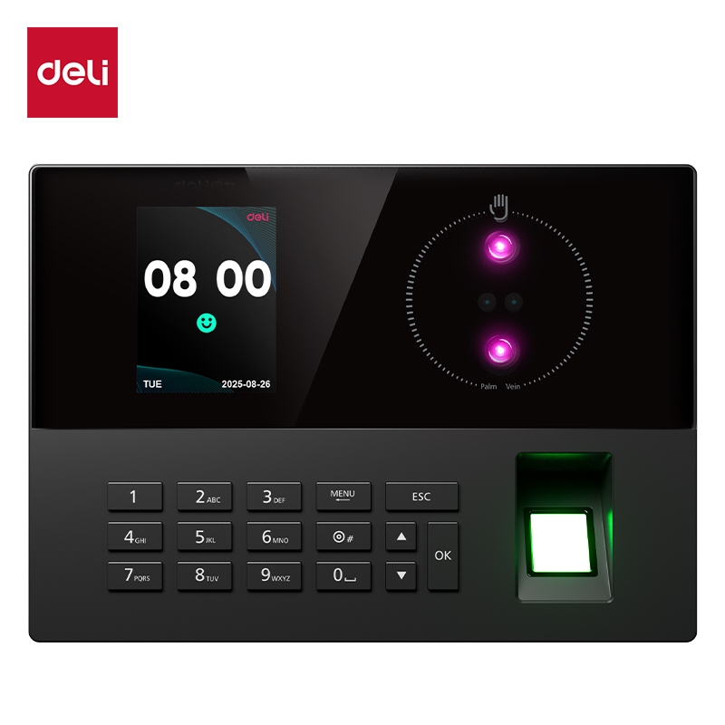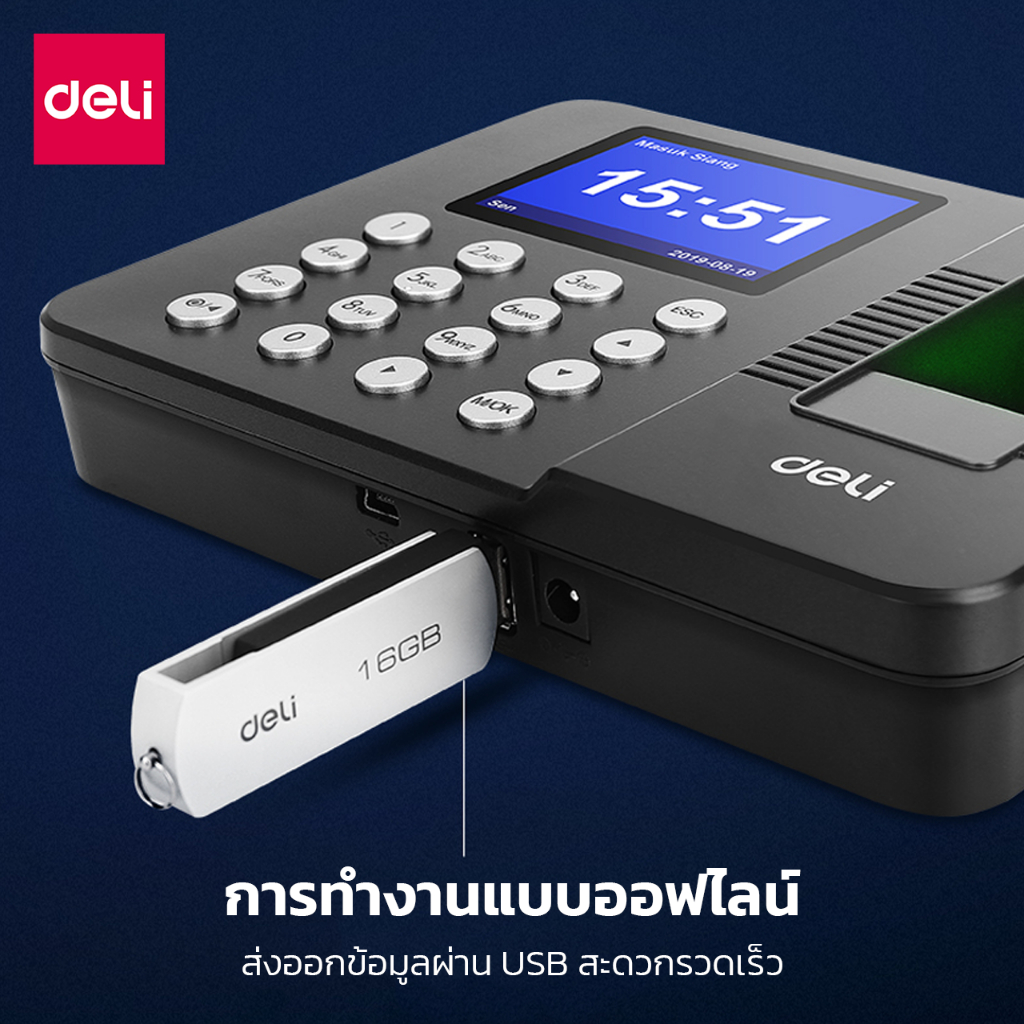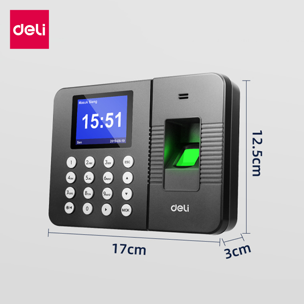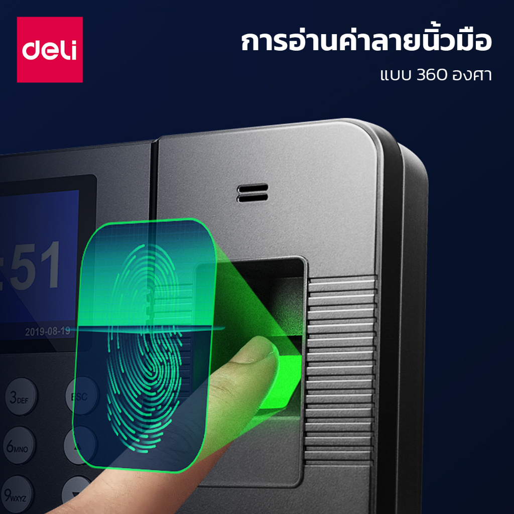 Deli เครื่องตอกบัตร เครื่องสแกนลายนิ้วมือ สแกนนิ้วมือลงเวลา จดจำลายนิ้วมือรวดเร็ว Attendance Machine