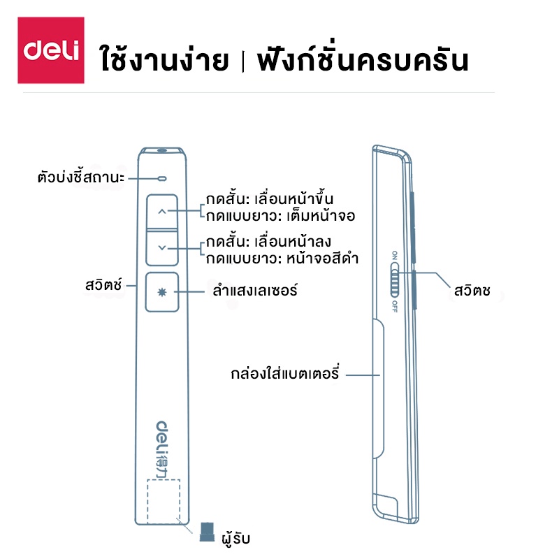 Deli ปากกาเลเซอร์ เลเซอร์พอยเตอร์ พ้อยเต อร์ สำหรับการนำเสนอ รีโมท พรีเซนต์ Laser Pointer