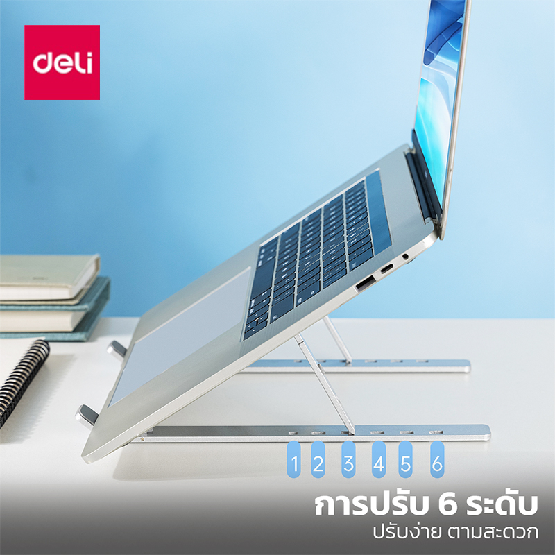 Deli แท่นวางโน๊ตบุ๊ค ขาตั้งโน๊ตบุ๊ค กันลื่น พกพาสะดวก ปรับได้ 6 ระดั บ รับน้ำหนักได้ 40 Kg Laptop Stand