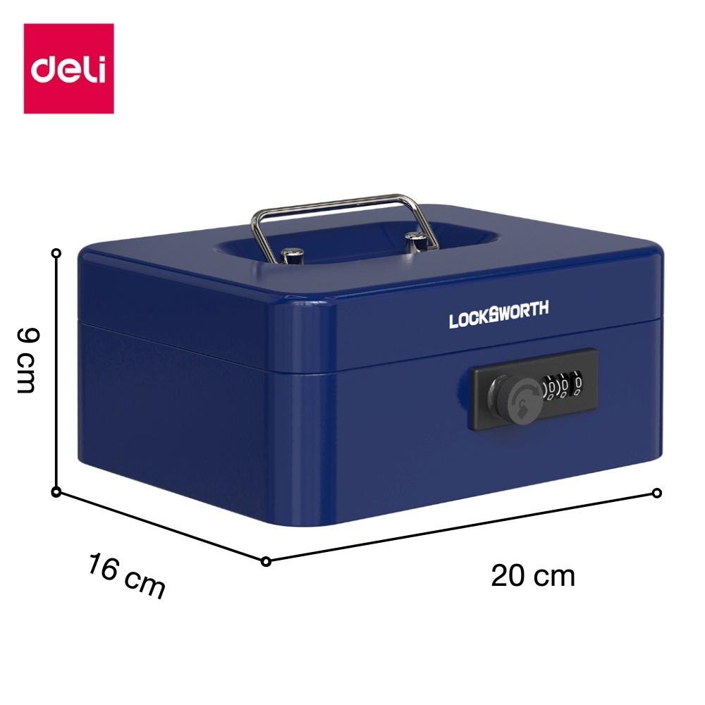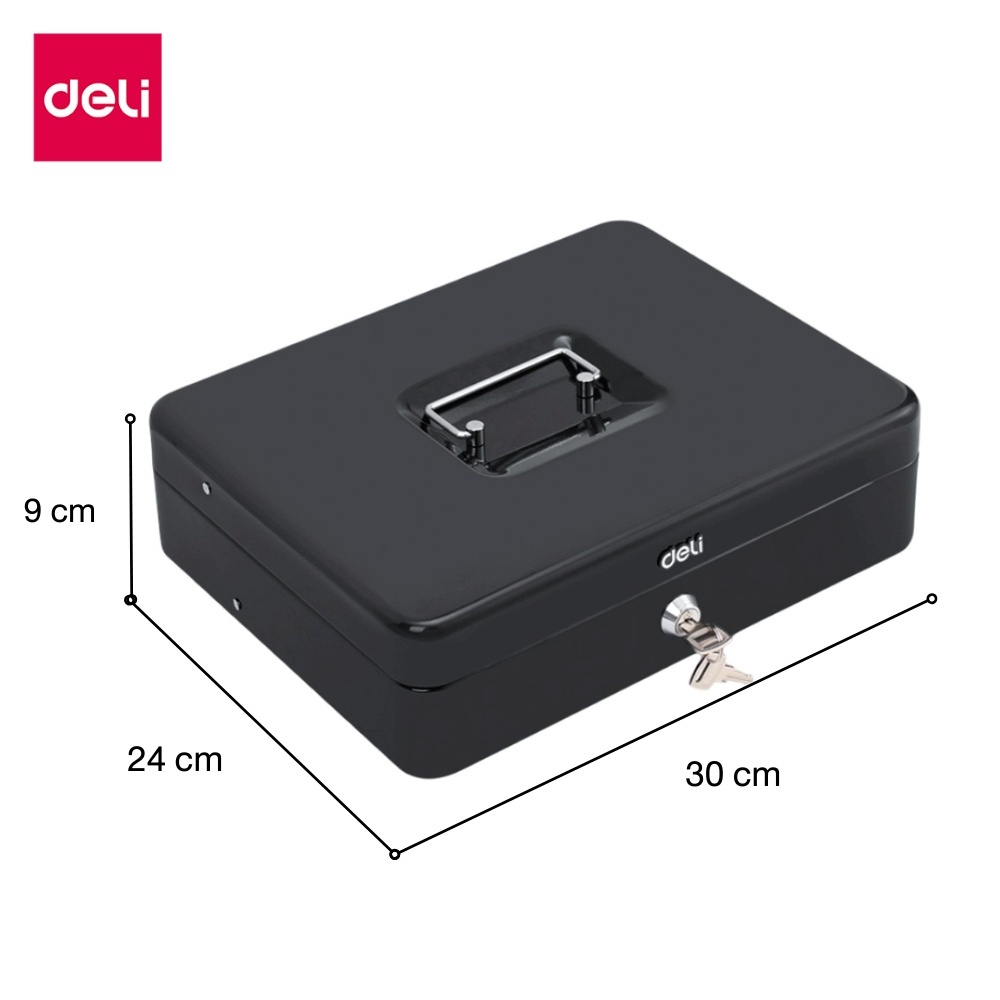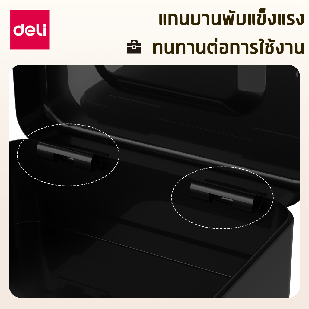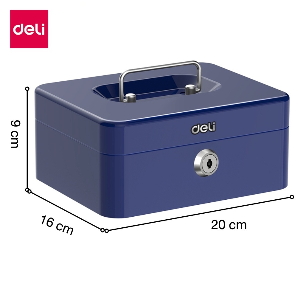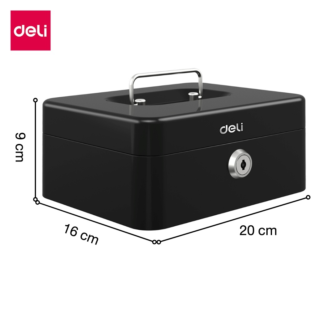Deli กล่องเหล็กเก็บเงิน เซฟหิ้ว กันไฟ กล่องเซฟ เซฟพกพา อเนกประสงค์ มีหูหิ้ว แบบล็อครหัส Cash Box