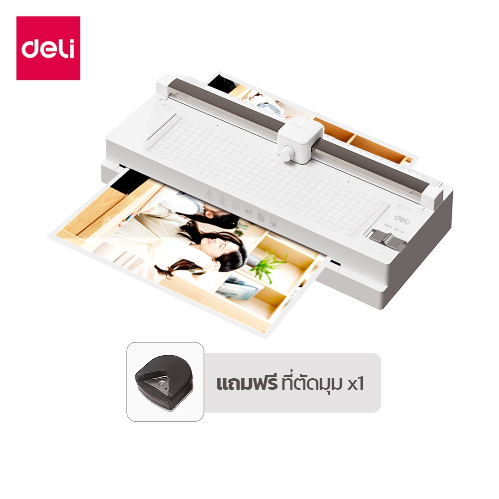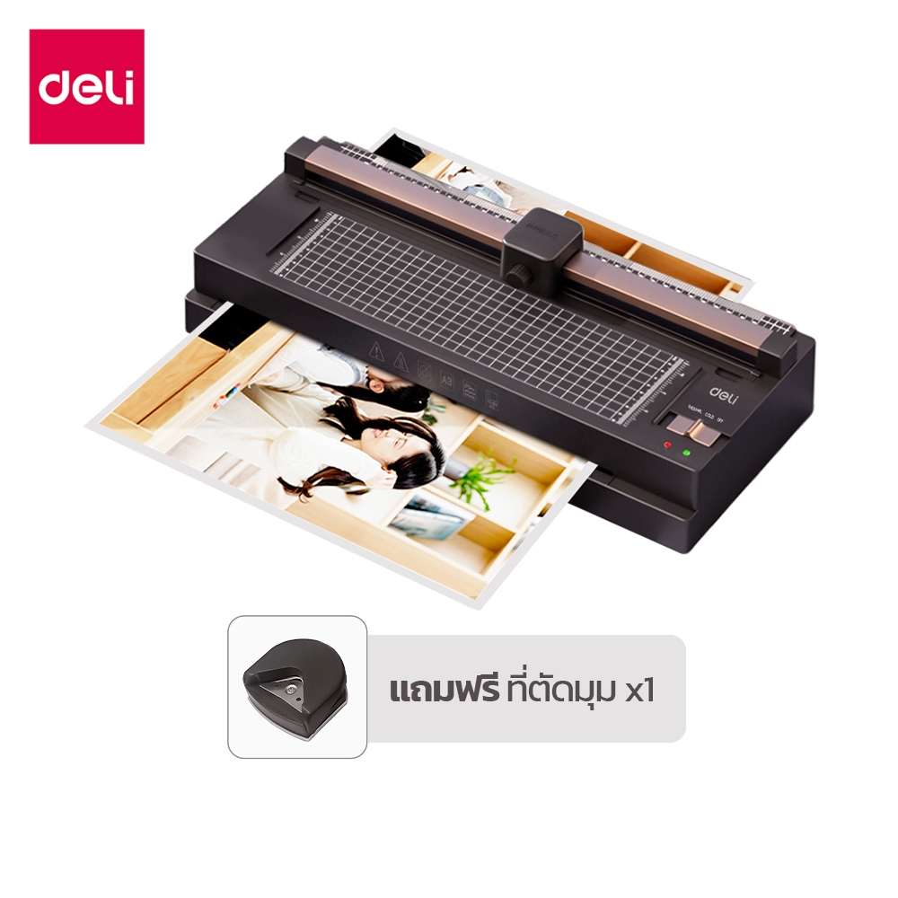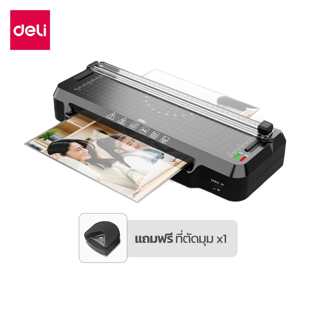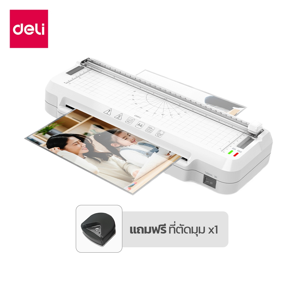 [แถมฟรี] Deli เครื่องเคลือบเอกสาร เครื่องเคลือบบัตร 5in1 มีที่ตัดในตัว แถมเครื่องตัดมุม Laminator