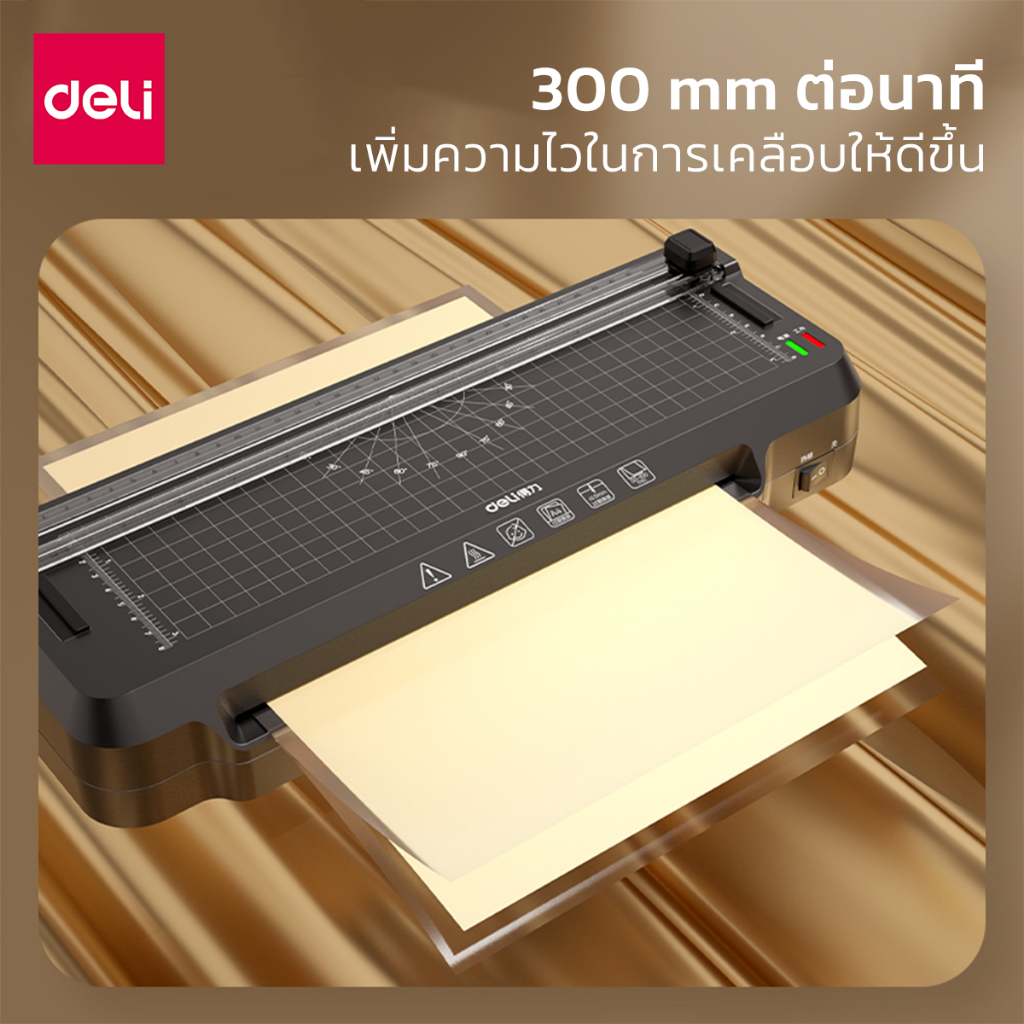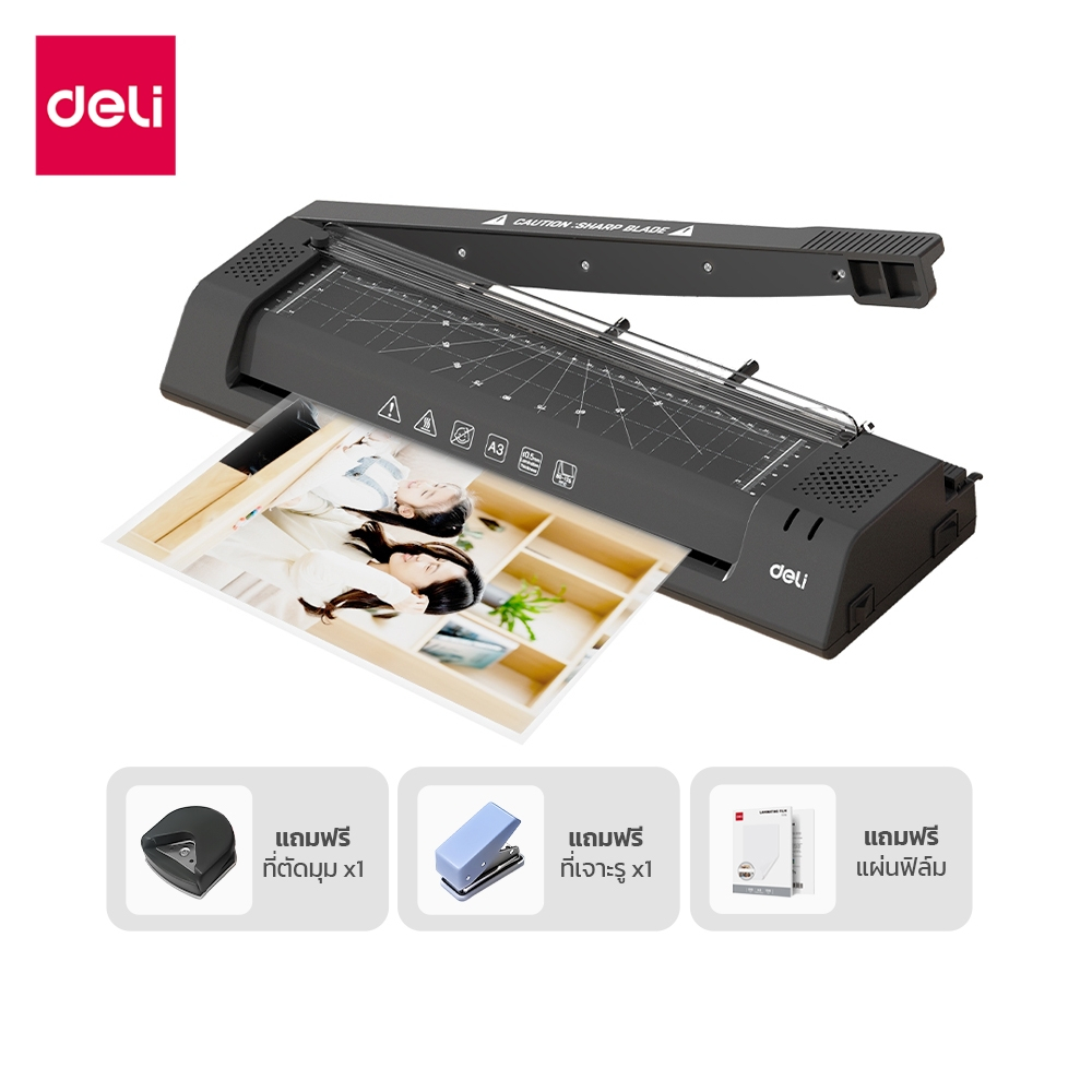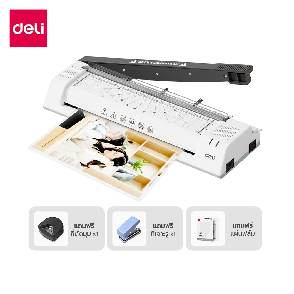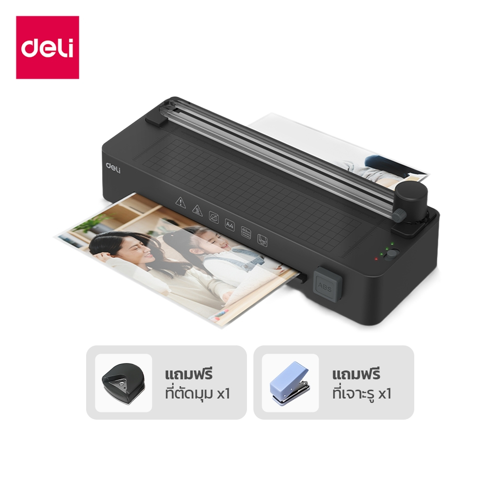 [แถมฟรี] Deli เครื่องเคลือบเอกสาร เครื่องเคลือบบัตร 5in1 มีที่ตัดในตัว แถมเครื่องตัดมุม Laminator