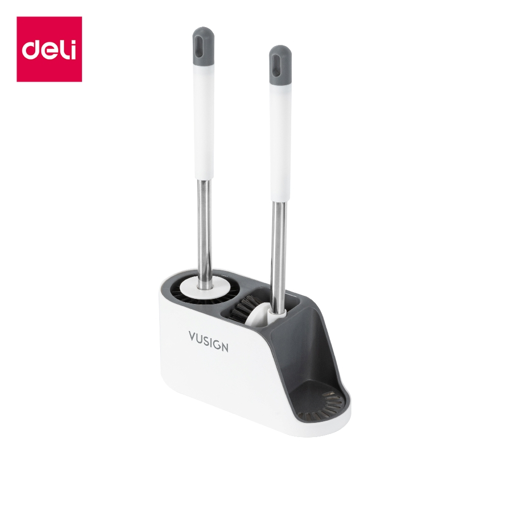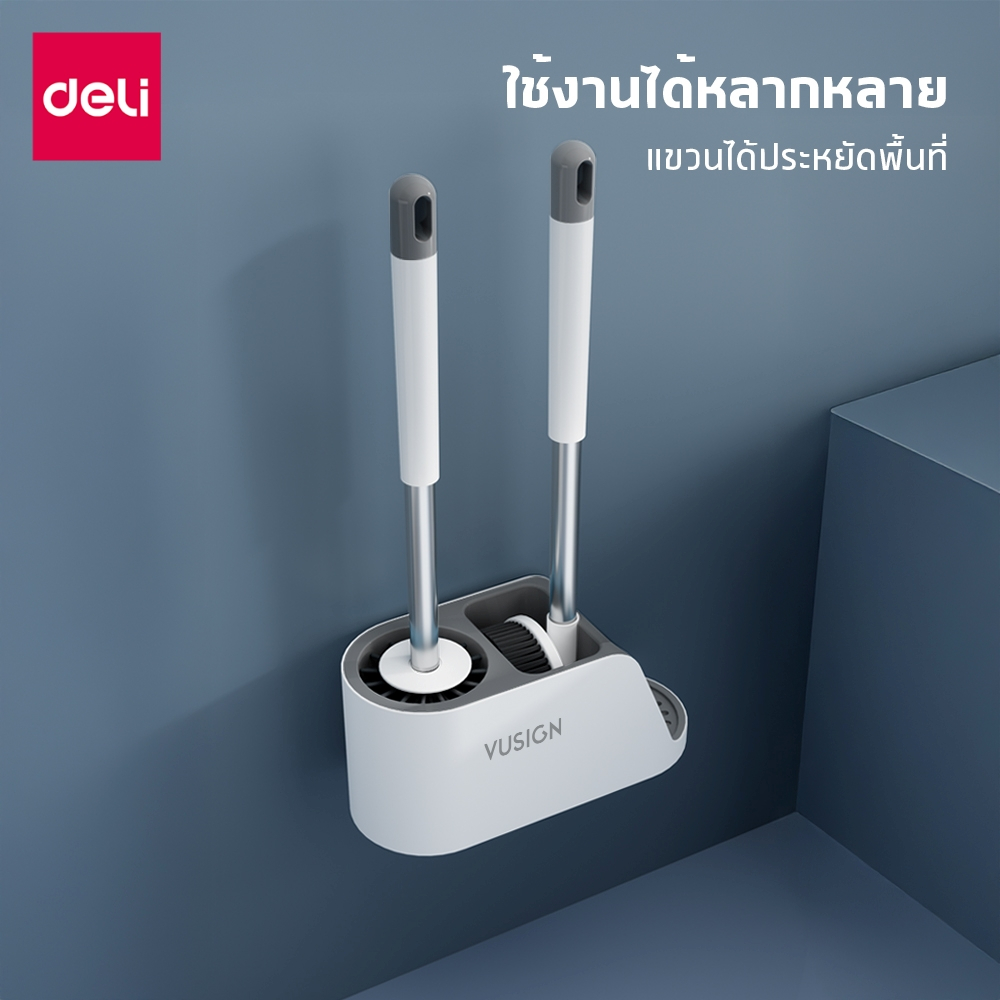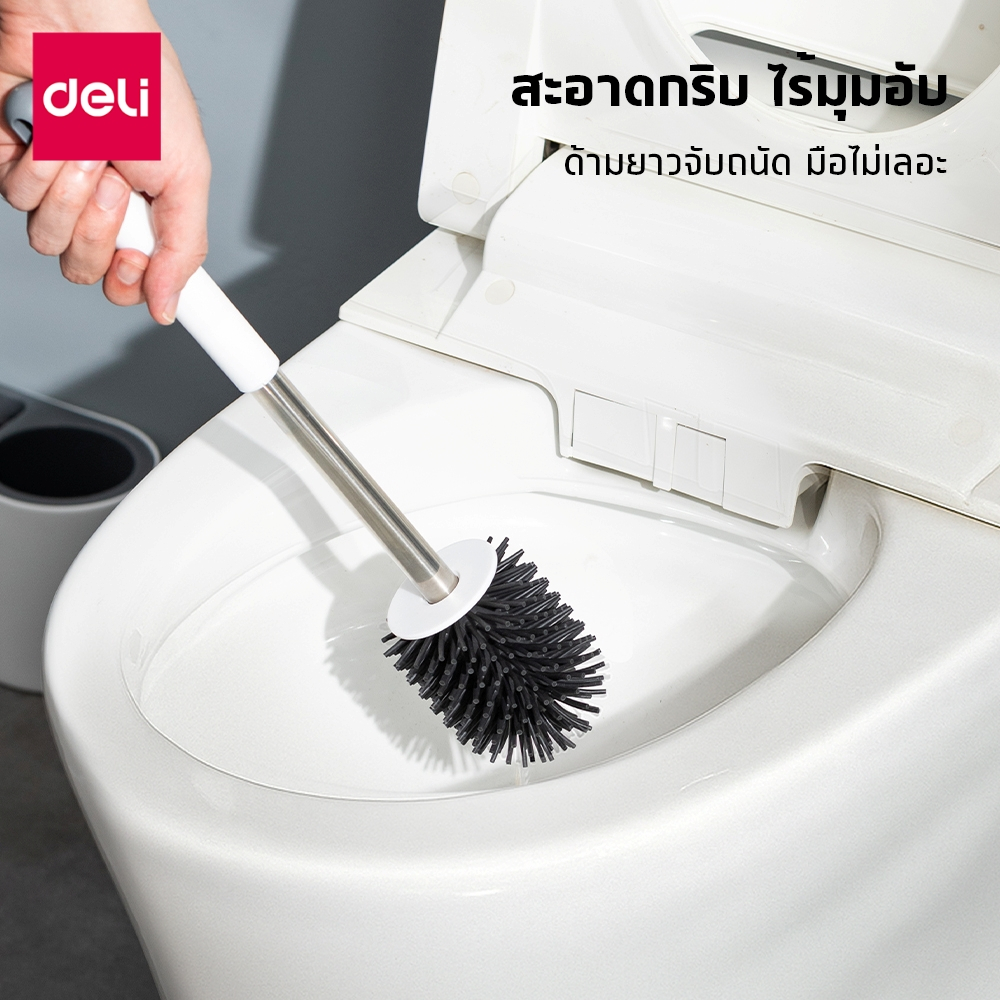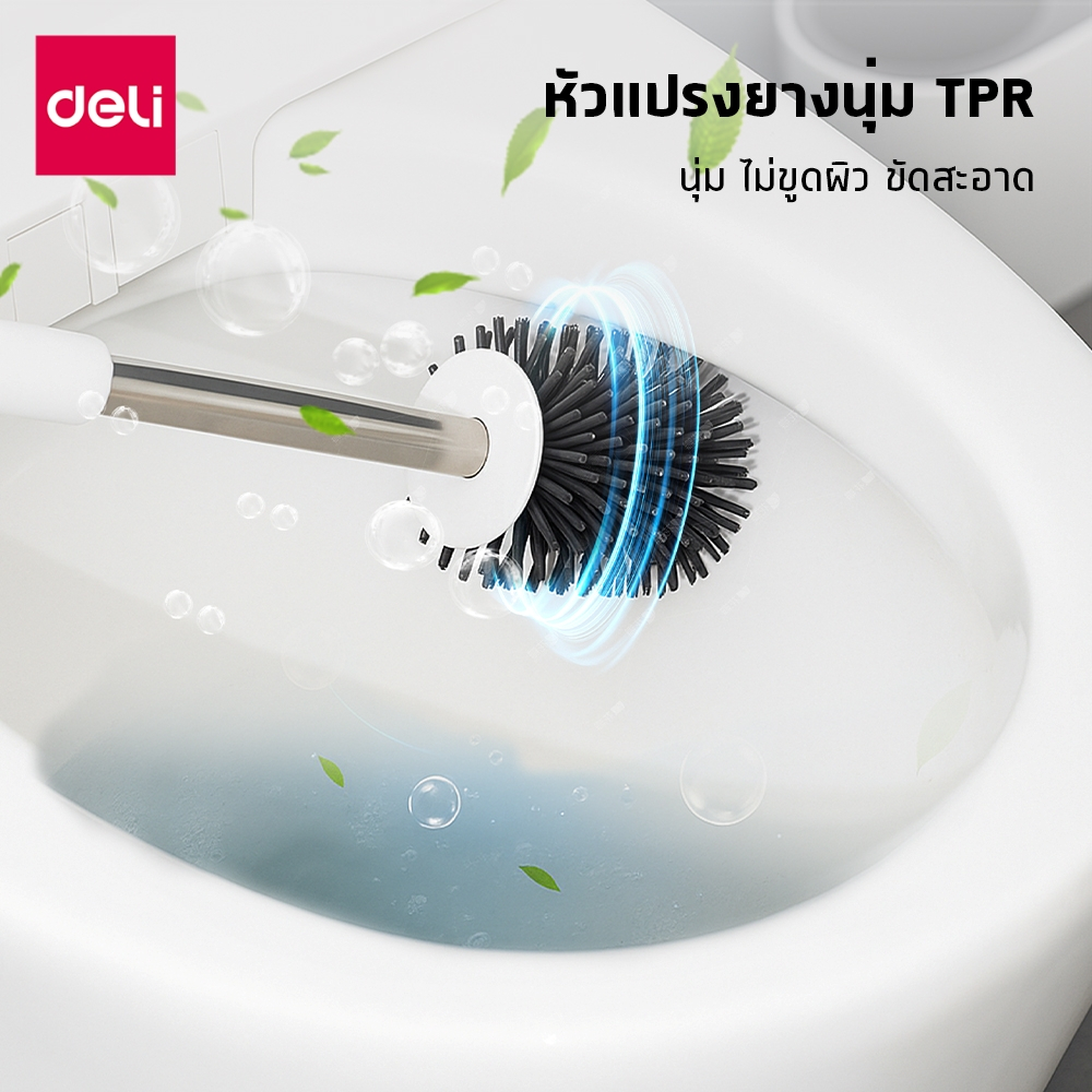 Deli ชุดแปรงล้างห้องน้ำ 2in1 สะอาดจบในตัวเดียว หัวแปรงนุ่ม ระบายอากาศ ไว ขจัดคราบง่าย Toilet Brush