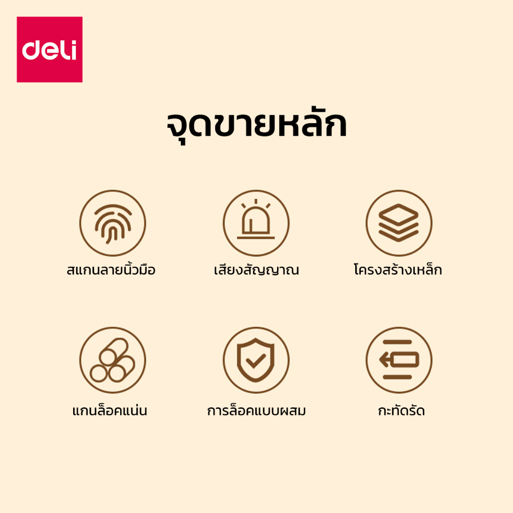 Deli ตู้เซฟดิจิตอล ตู้เซฟนิรภัย ล็อคลายนิ้วมือ กะทัดรัด กันไฟ กันสนิม แข็งแรง รับประกัน1ปี Safe Box