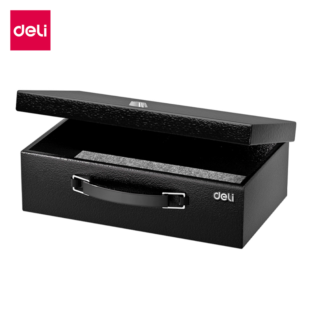 Deli เซฟกันไฟพกพา เซฟหิ้วกันไฟ กล่องเซฟกันไฟ แบบหูหิ้ว กันไฟ ระบบล็อคกุญแจแน่นหนา Portable Safe
