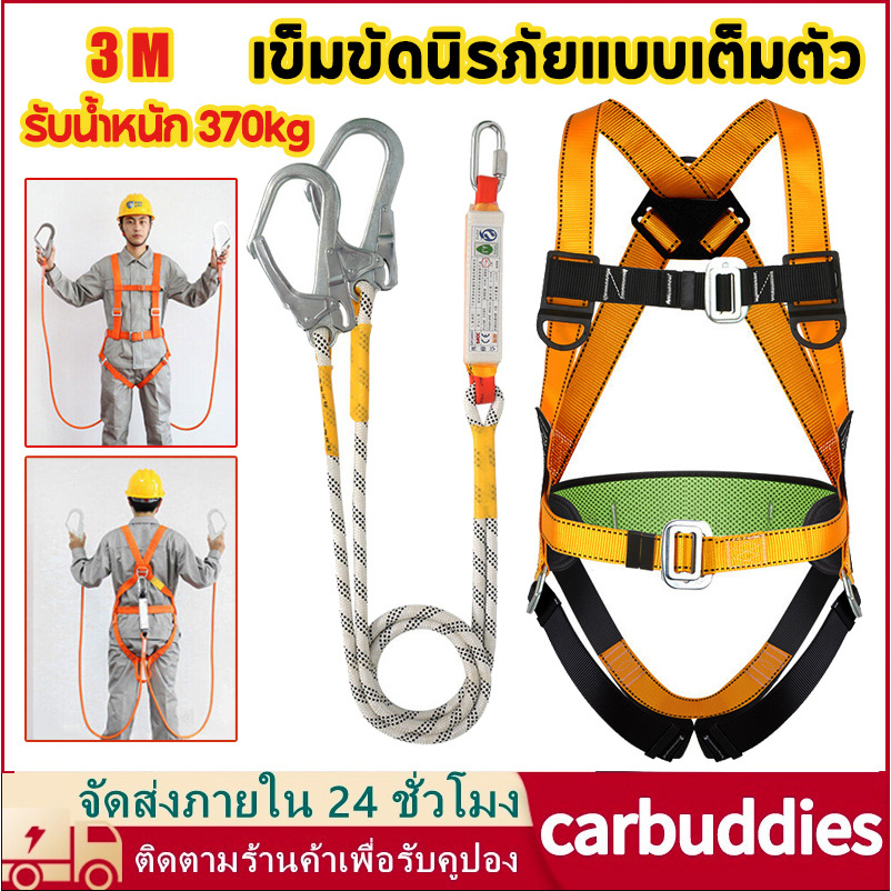 เข็มขัดเซฟตี้ เข็มขัดนิรภัยแบบเต็มตัว นิรภัย เชือก 3เมตร พร้อมบัฟเฟอร์ เส้นคู่และอุปกรณ์ดูดซับแรงกระซาก