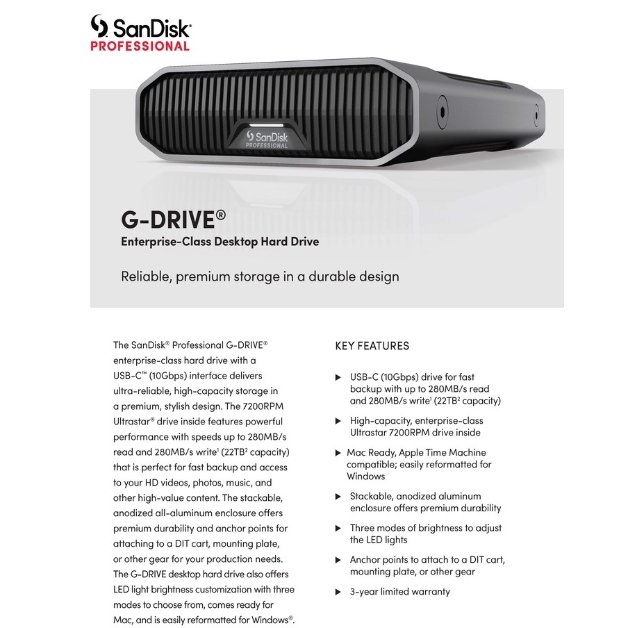 G-DRIVE 4TB 6TB 12TB 18TB 22TB EnterpriseClass USB 3.2 Gen2 External HDD(SDPHF1A)SanDiskProfessional