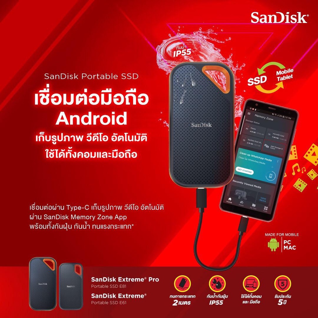 SanDisk Extreme Pro V2 (SDSSDE81) Portable SSD 1TB 2TB 4TB Speed upto 2000 MB/s ประกัน Synnex 5 ปี
